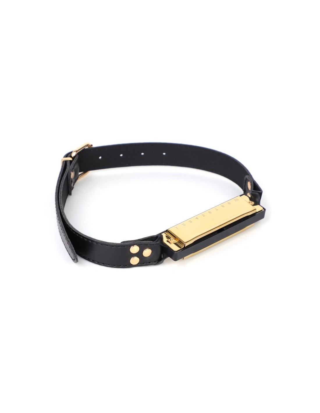 BDSMasterBâillon ajustable de 47 à 65 cm. Harmonica : longueur de 10.5 cm et largeur de 3 cm. En simili et métal.