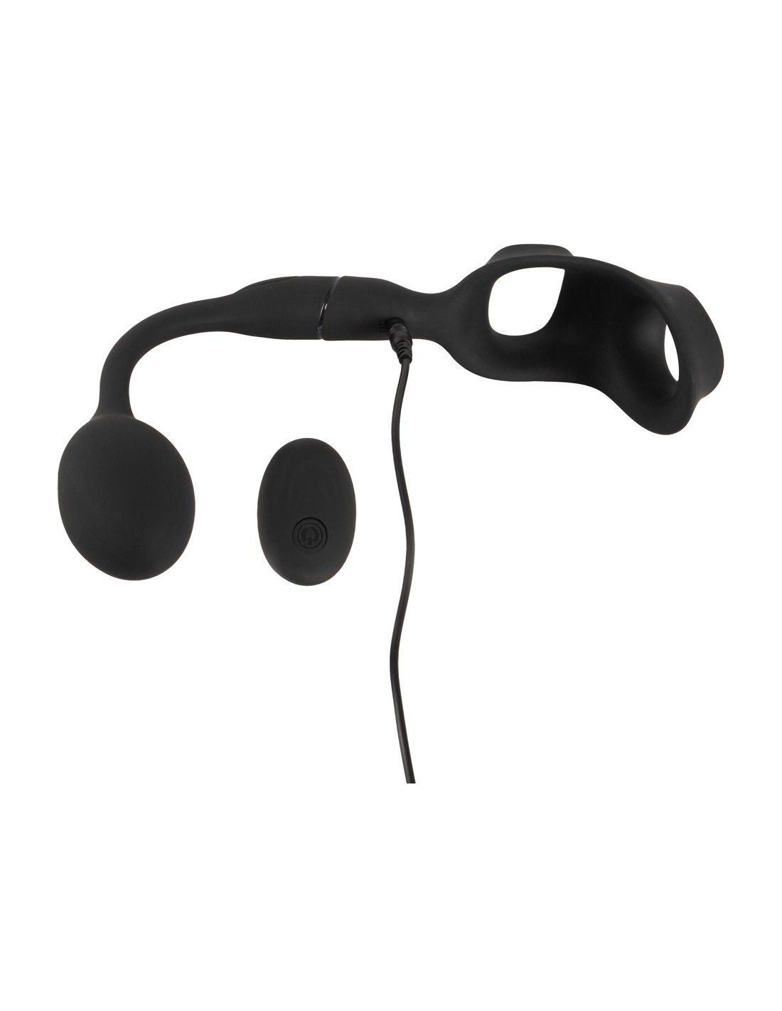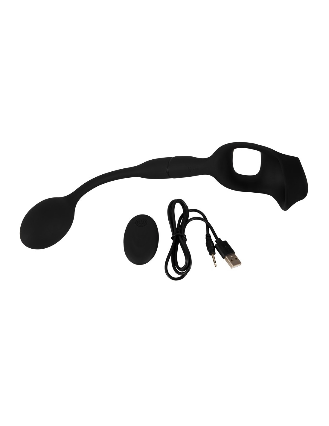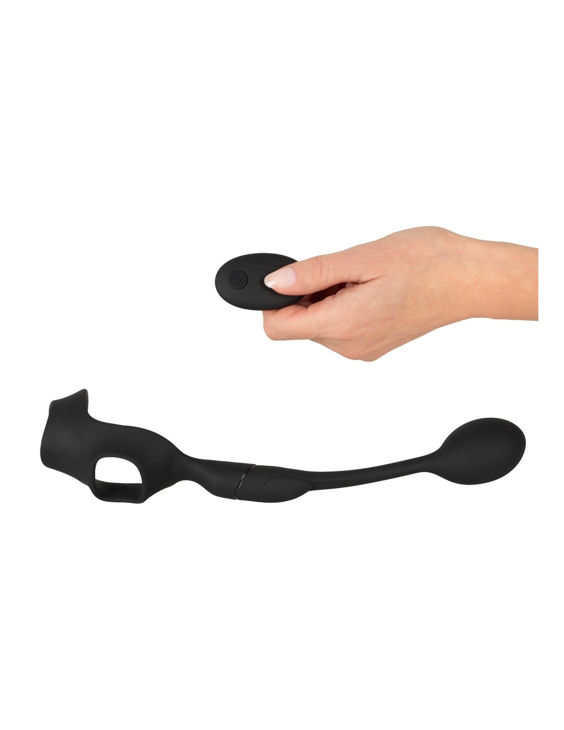 Ballstretcher avec des ouvertures de 35 mm.Plug de 6.5 cm de longueur insérable et de 4 cm de largeur. Avec 10 modes de vibrations. Avec une télécommande. En silicone.Recharge USB