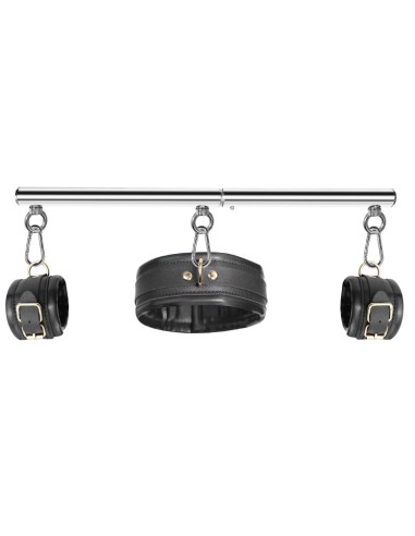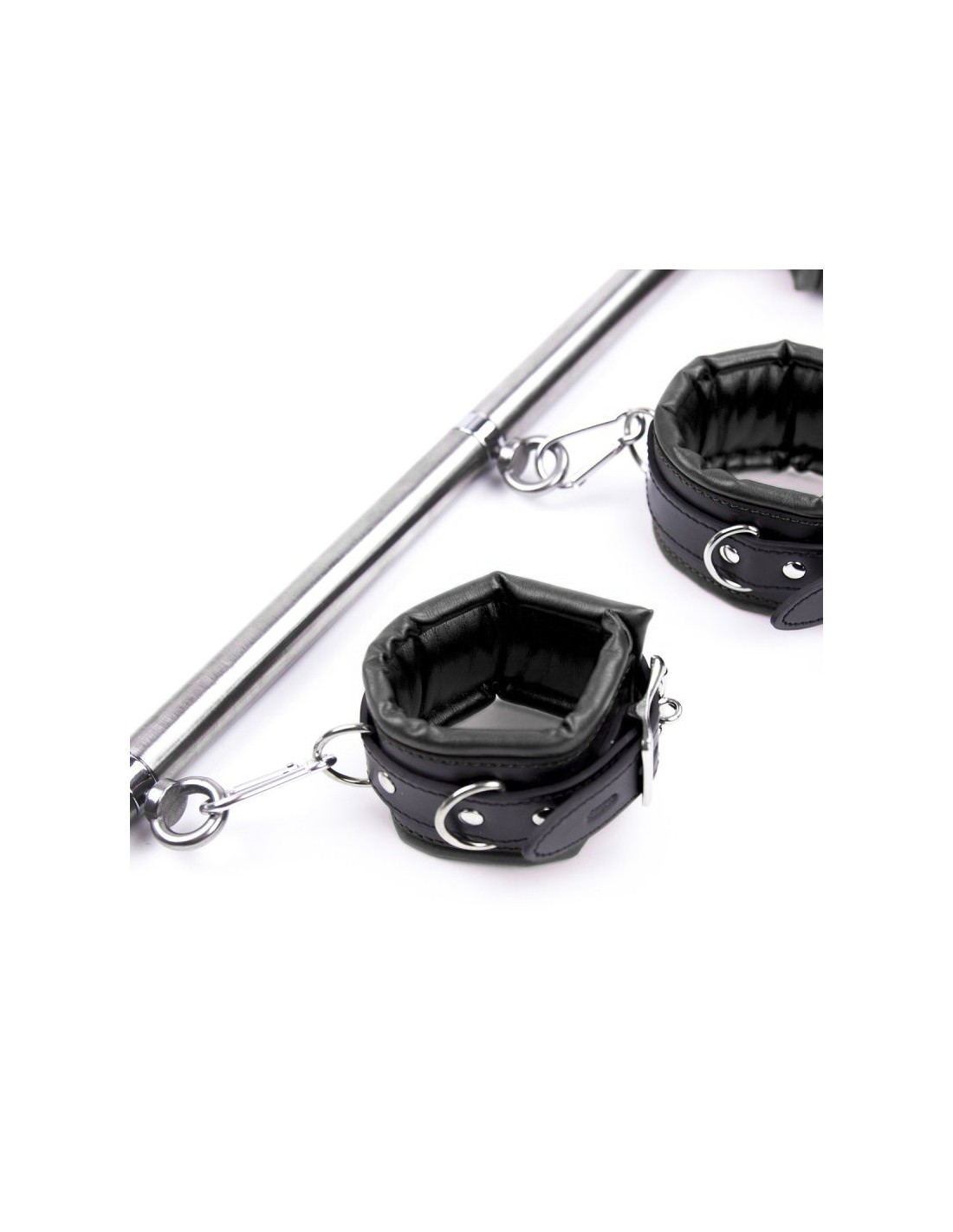 BDSMasterKit SM contenant : barre de 45 cm en métallargeur des accessoires de 6 cmmenottes de poignets ajustables de 17 à 27 cmcollier ajustable de 37 à 46 cm