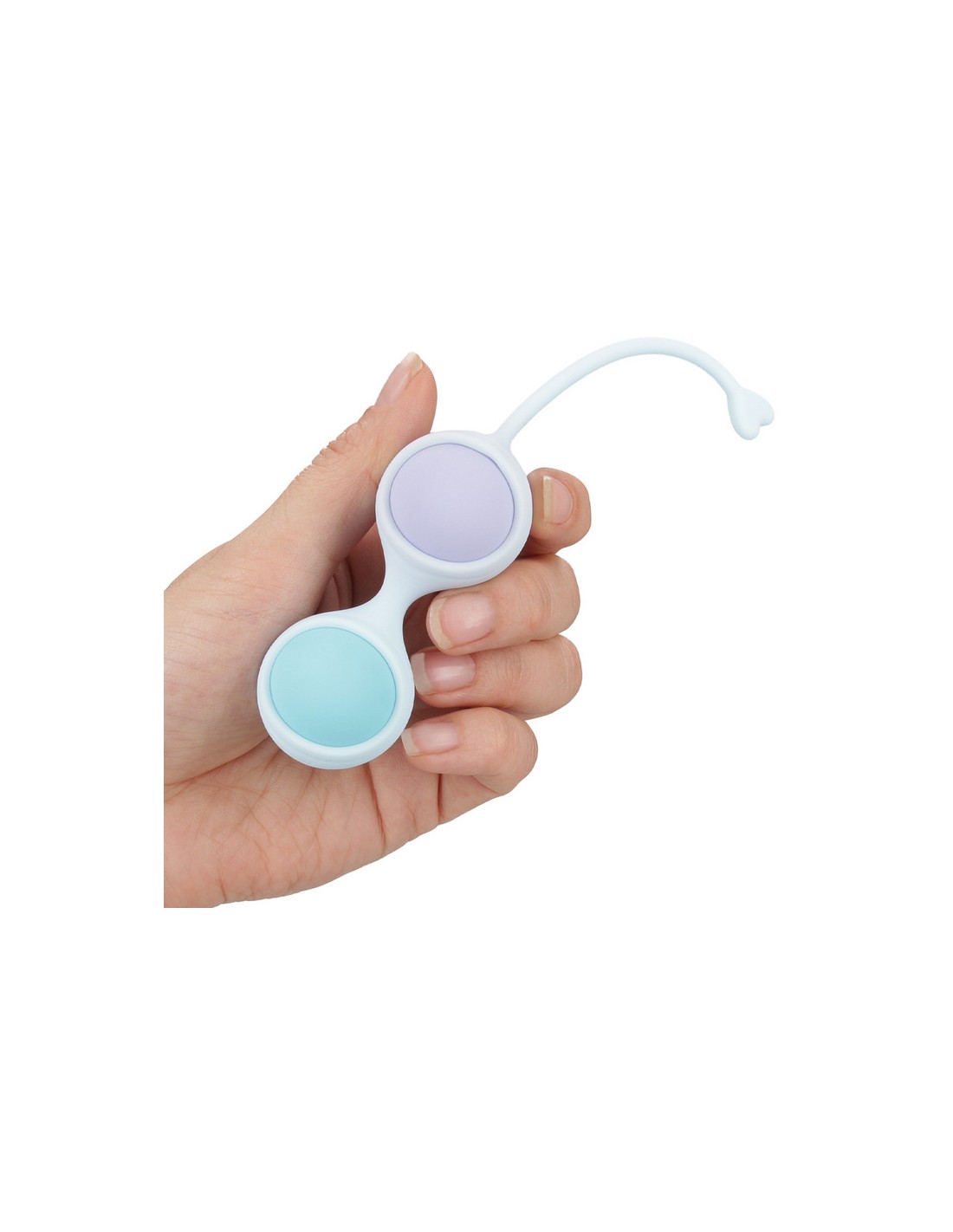 Set de 5 boules de geisha (1 vibrante)Longueur insérable de la double boule de 8 cm.Poids de 18 à 38 grammes.Diamètre de 33 à 35 mm (incluant l'épaisseur du support)10 modes de vibrationsEn silicone, étanche et rechargeable