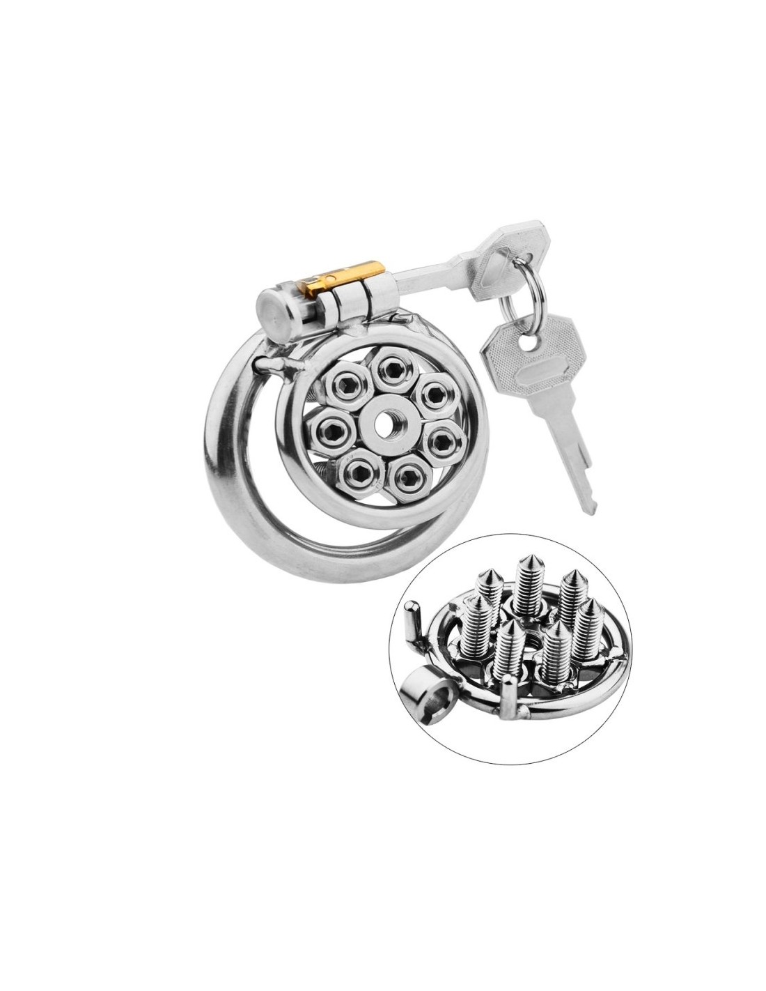 Dimensions :Longueur intérieure 1.2 cmDiamètre des anneaux 40 mm, 45 mm et 50 mmPoids 135 grammes.Précautions d'utilisation : la nettoyer après chaque utilisationnettoyer également les picots, de préférence avec un antibactérien et antifongiqueconserver un double de la clé en lieu sûr, facilement accessible et connu de vousla conserver dans un endroit propre, sec et à l'abri de la chaleur, sans contact avec un autre objet.
