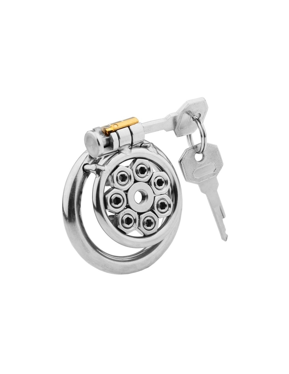 Dimensions :Longueur intérieure 1.2 cmTige d'urètre : longueur 7.5 cm / Largeur 7 mmDiamètre des anneaux 40 mm, 45 mm et 50 mmPoids 135 grammes.Précautions d'utilisation :la nettoyer après chaque utilisationconserver un double de la clé en lieu sûr, facilement accessible et connu de vousla conserver dans un endroit propre, sec et à l'abri de la chaleur, sans contact avec un autre objetPour la tige :la nettoyer avant et après l'utilisationl'insérer avec du lubrifiant adaptéEn cas de douleur aigüe ou saignement, la retirer et consulter un médecinla conserver dans un endroit propre sec et à l'abri de la chaleur.