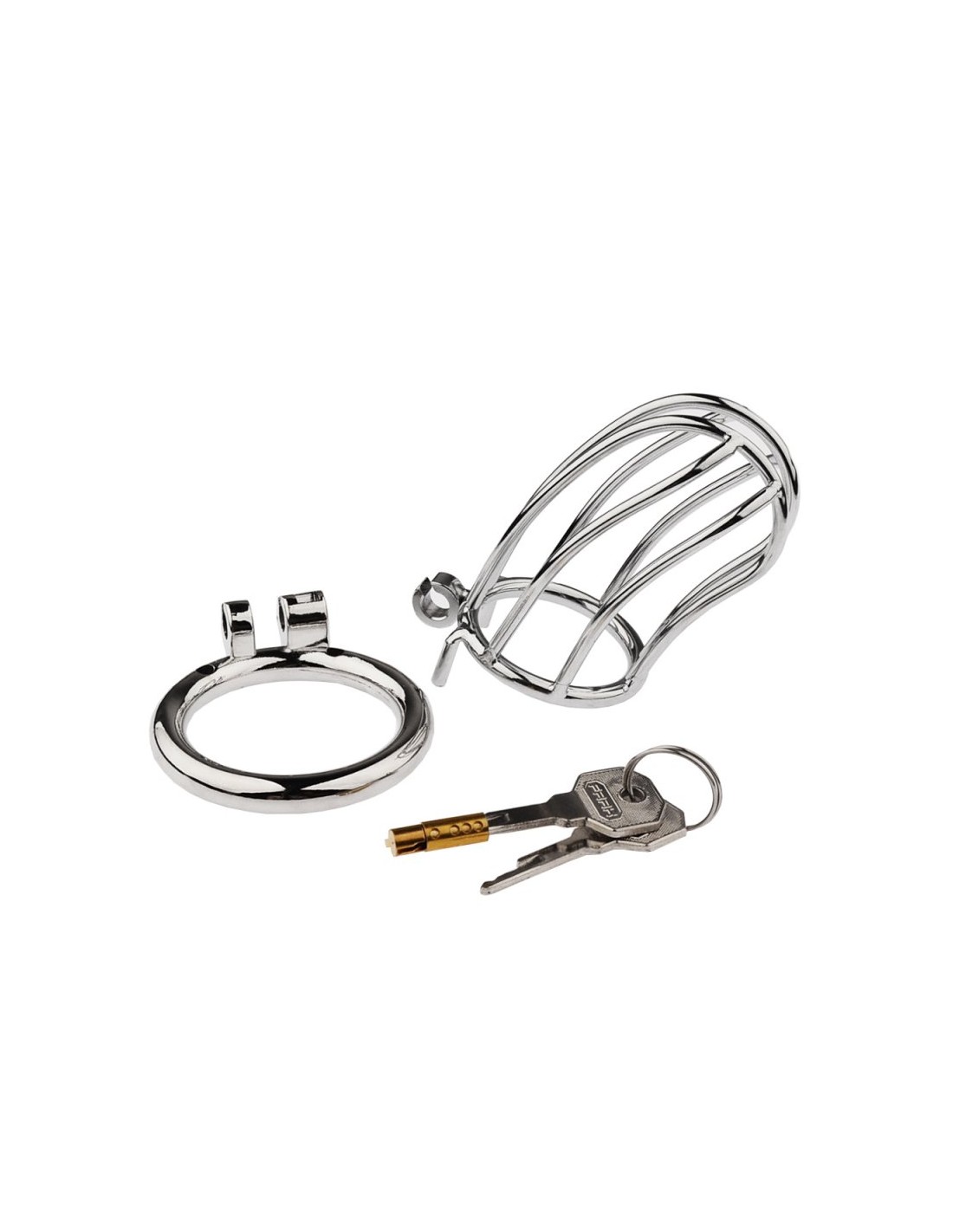 Dimensions :Dimensions totales 8.5 x 7 cmLongueur intérieure 9 cmDiamètre interne 36 mmPoids maximum 145 grammesAnneaux de maintien de 40 mm, 45 mm, 50 mm et 55 mm.Précautions d'utilisation :la nettoyer avant et après chaque utilisationeffectuer l'hygiène intime régulièrement en la retirant en cas de port prolongéplacer un double des clés en lieu sûr et accessible, connu de vousla conserver dans un endroit propre, sec et à l'abri de la chaleur.