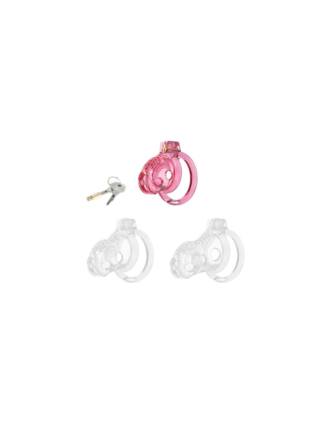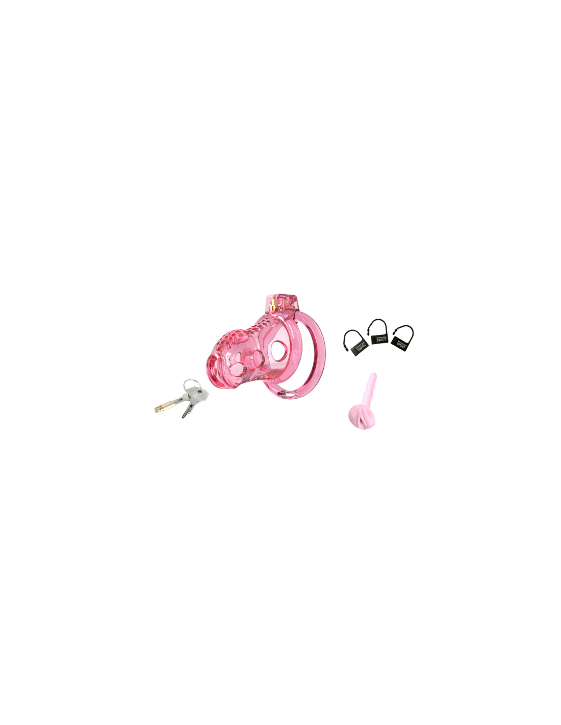 Cage de chasteté souple, avec 6 anneaux droits de 40, 44, 48, 52, 56 et cm. Longueur insérable de 6 cm et diamètre de 3.6 cm.Tige d'urètre souple, de 6.3 cm et diamètre de 8 mm.En silicone avec anneaux en plastique ABS.