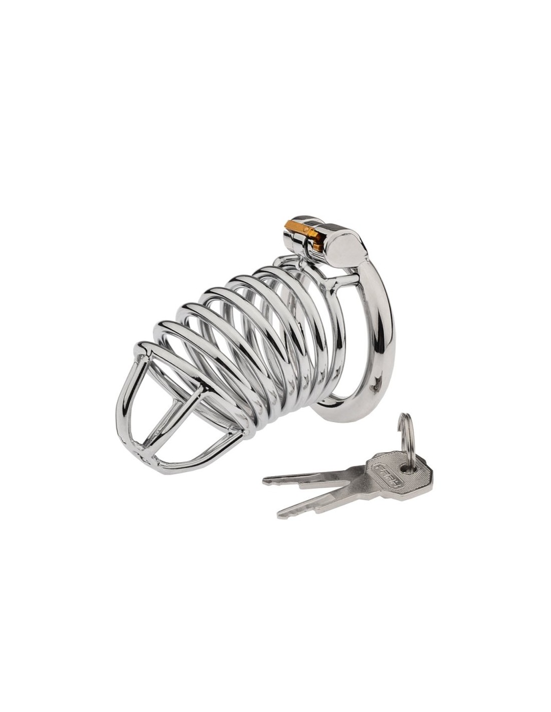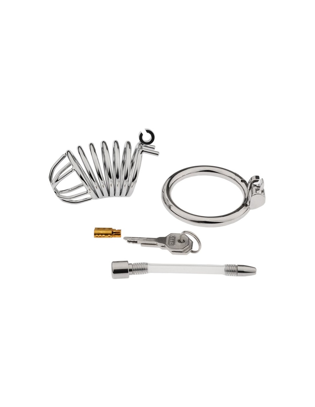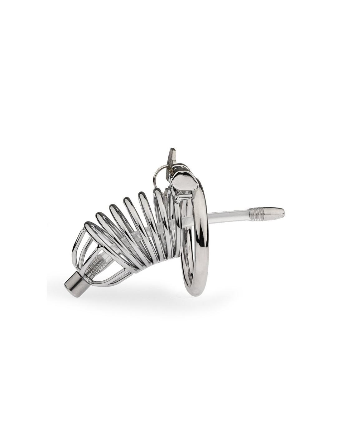 Dimensions :Dimensions totales 7.5 x 7 cmLongueur intérieure 8.5 cmDiamètre interne 35 mmTige d'urètre de 8 x 0.7 cmPoids maximum 190 grammesAnneaux de maintien de 40 mm, 45 mm, 50 mm et 55 mm.Précautions d'utilisation :la nettoyer avant et après chaque utilisationeffectuer l'hygiène intime régulièrement en la retirant en cas de port prolongéplacer un double des clés en lieu sûr et accessible, connu de vousla conserver dans un endroit propre, sec et à l'abri de la chaleur.