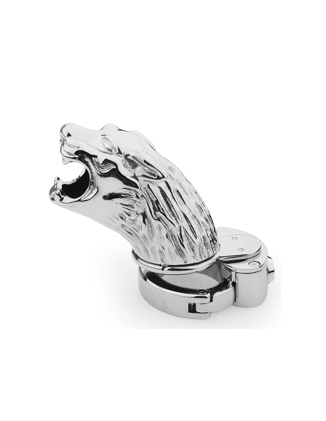 CockLockCage de chasteté en forme de tigre, ouverte.Anneau ajustable de 40 à 50 mm.Longueur intérieure de 9 cm et diamètre insérable de 3.2 cm. En métal, avec 2 clés.