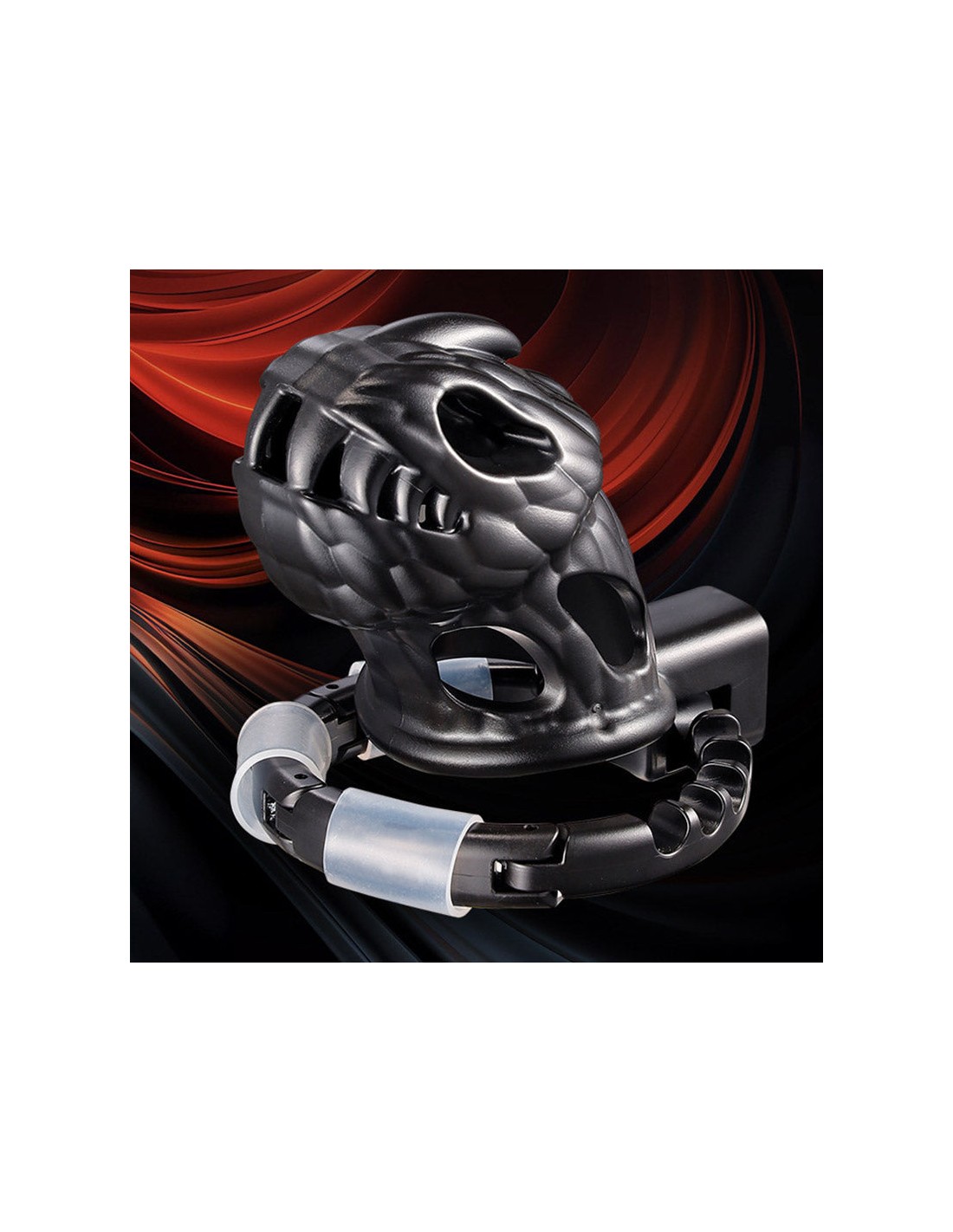 CockLockLongueur intérieure de 10 cm et diamètre de 37 mm.Avec une forme de tête de dinosaure.Serrure intégrée et anneau de maintien ajustable.En plastique ABS.