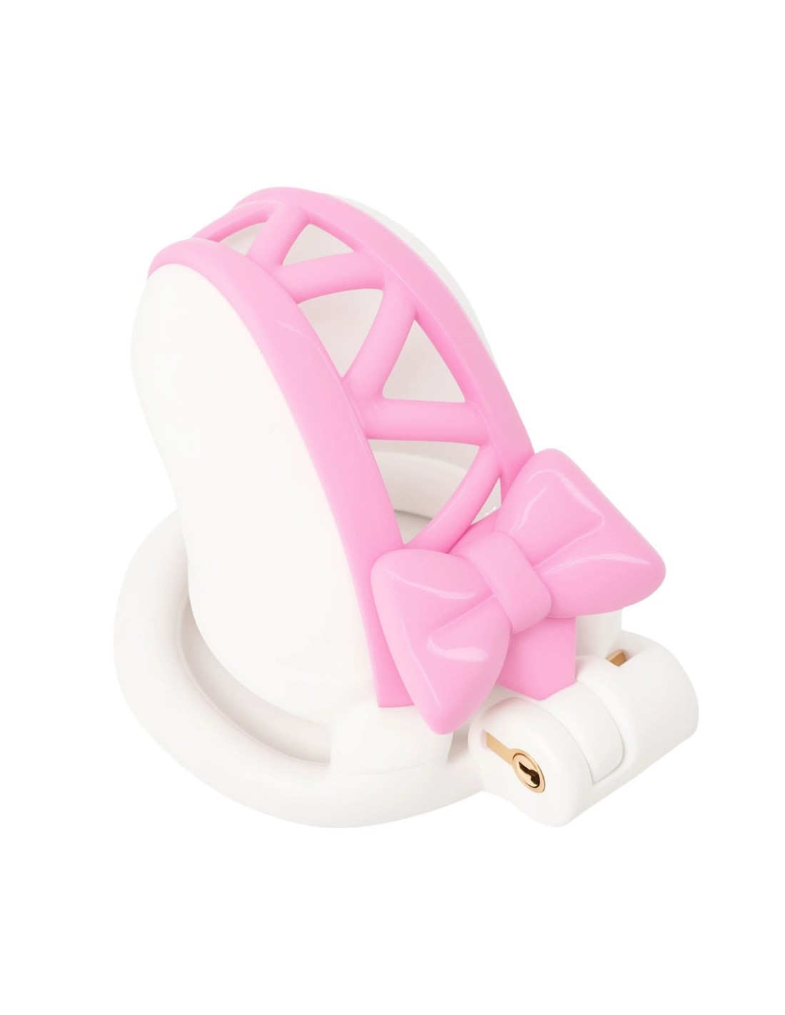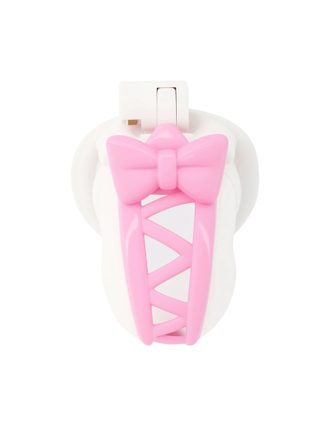 CockLockLongueur intérieure de 7.5 cm. Largeur de 3.5 cm.Forme avec un noeud rose.Serrure intégrée.Plastique ABS.