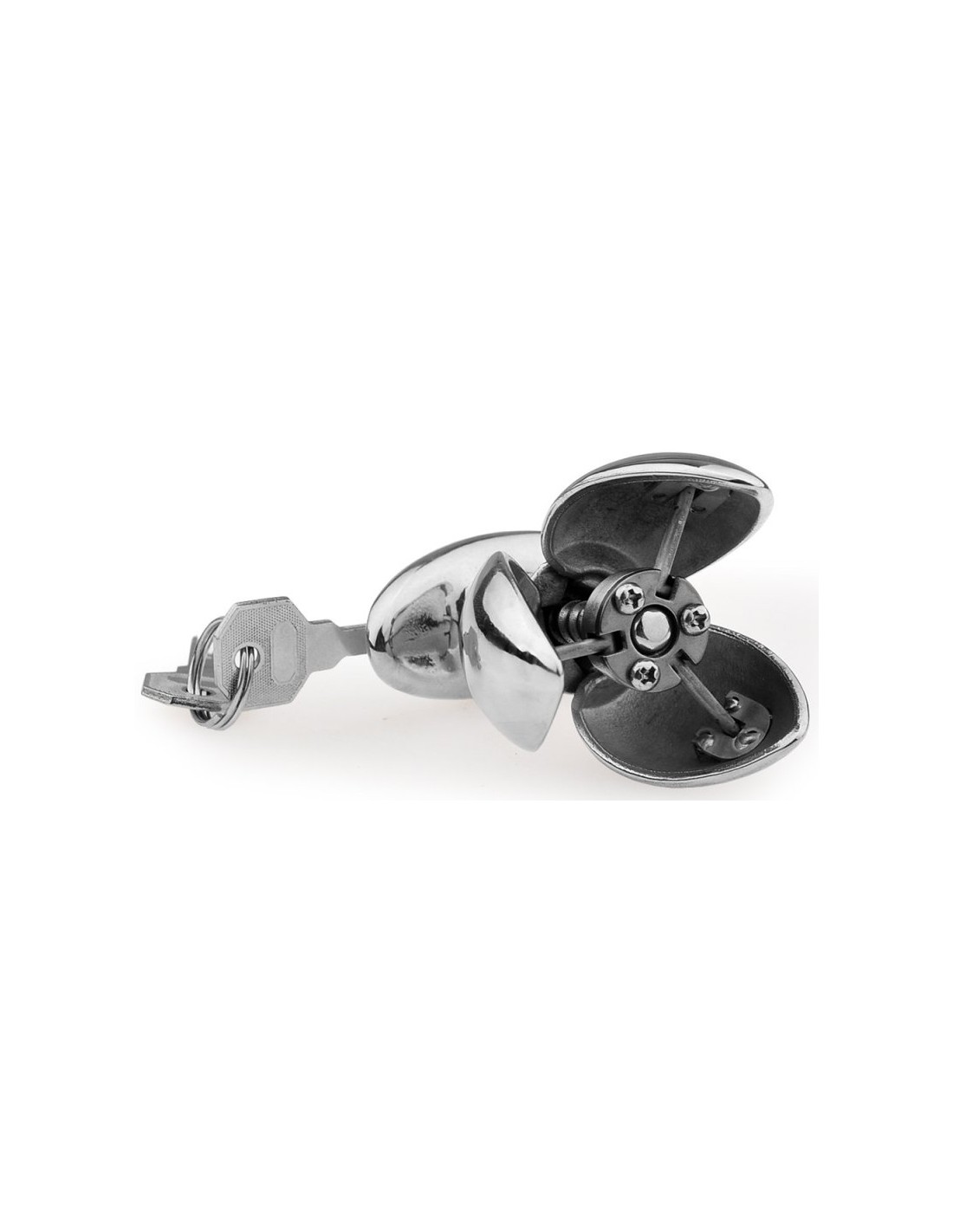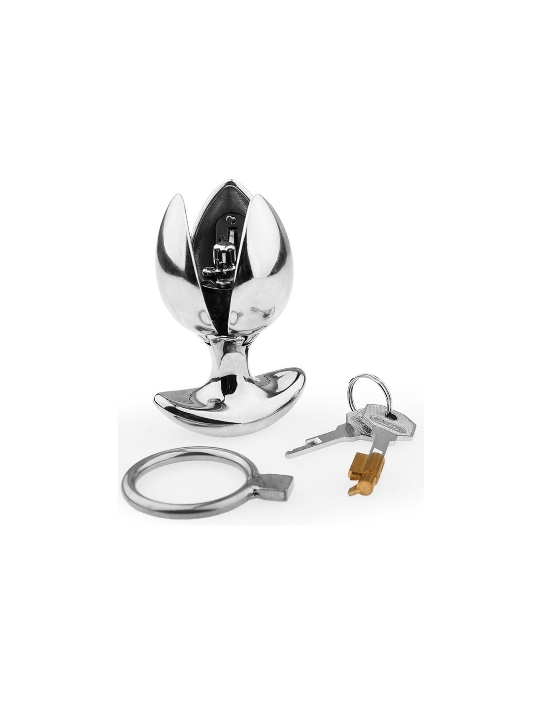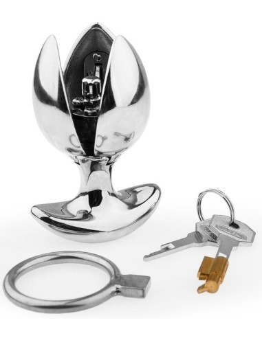 Longueur insérable de 7 cm. Largeur maximale de 5 cm.Les côtés s'écartent et bloquent ainsi l'anus.Avec un système simple d'expansion et serrure amovible.En métal inox.