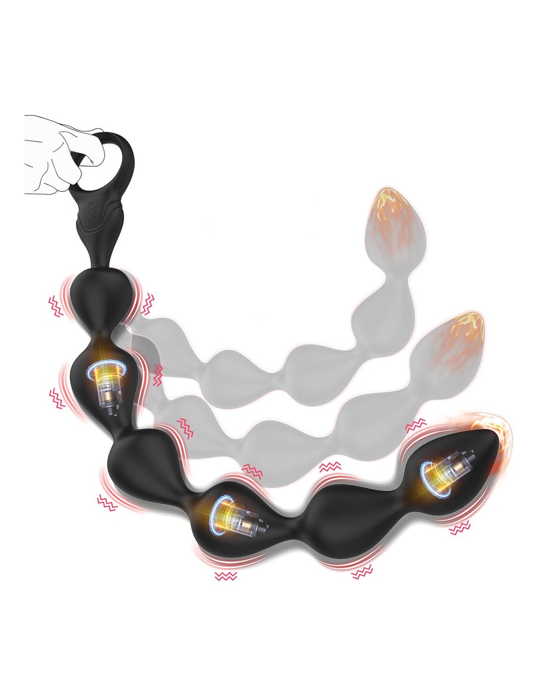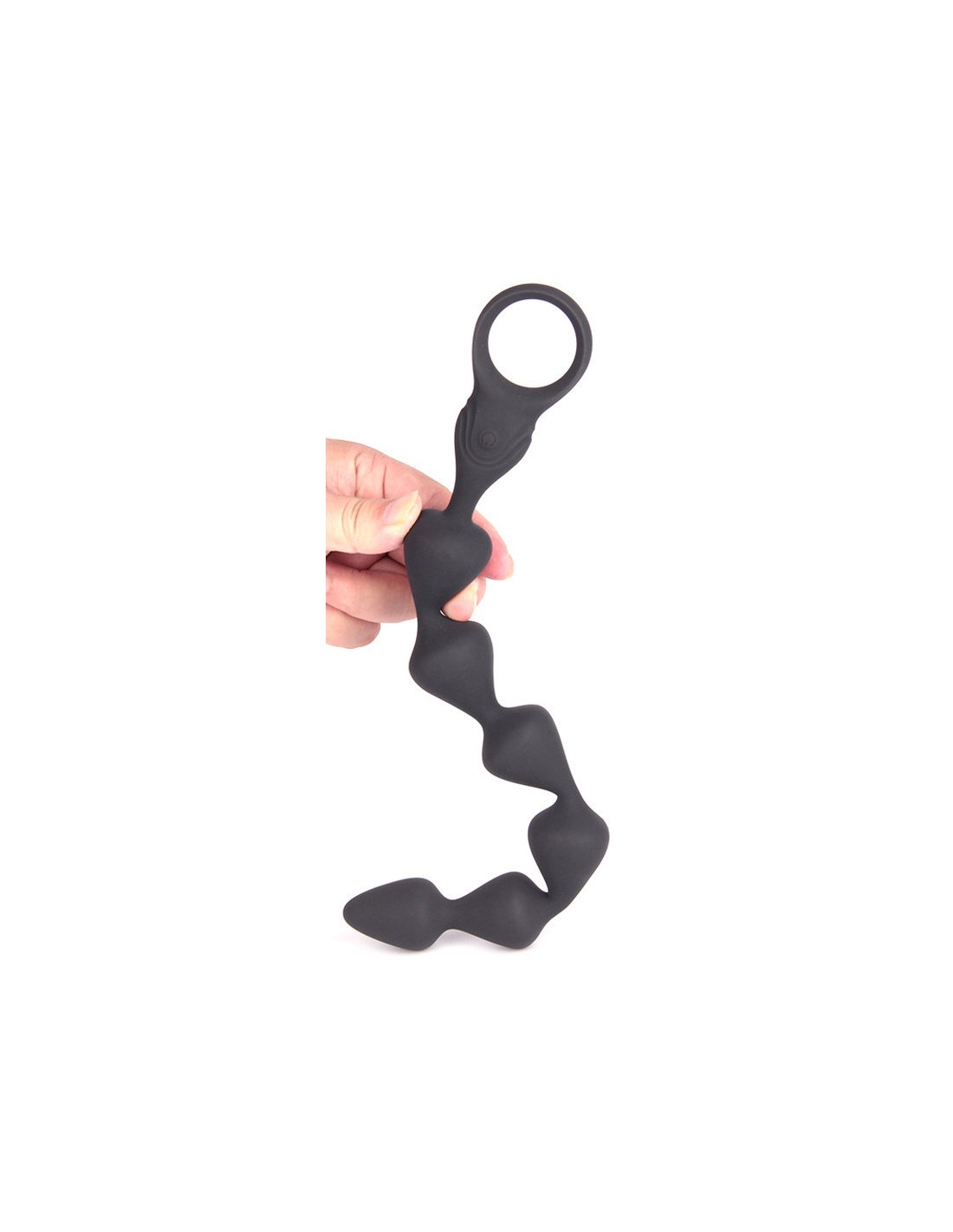 Caractéristiques :Longueur totale 36 cmLongueur insérable 28 cmLargeur mini 1 cm (entre les boules)Largeur maxi 3.4 cm10 modes de vibrationsAutonomie 50 minTemps de charge 100 min Rechargeable - batterie lithiumÉtanche, pas d'immersionPoids 180 grammesConseils d'utilisation : le nettoyer avant et après chaque utilisation avec de l'eau savonneuse tiède et le laisser sécher à l'air librel'utiliser, uniquement, avec du lubrifiant à base d'eau le conserver dans un endroit sec et propre, à l'abri de la lumière et de la chaleur, sans contact avec d'autres objets