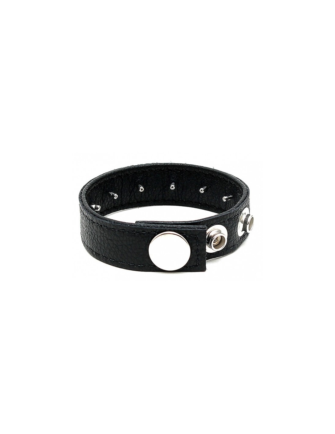 Ce cockring est réalisé en cuir et proposé par la marque Rimba.Il est composé d'une largeur de 18mm et de plusieurs picots à l'intérieur. Ceux-là viennent stimuler encore plus la zone sous les bourses.Avec les 3 boutons-pressions pour ajuster le diamètre entre 40 et 50mm