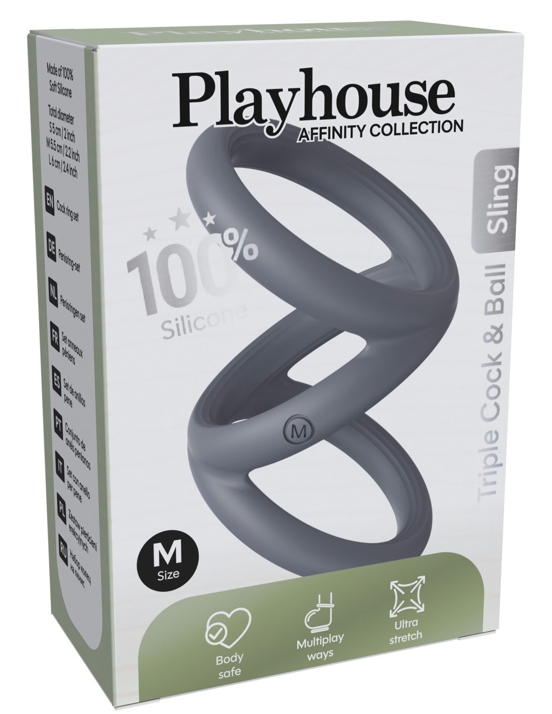 Dimensions :Dimensions totales 8 x 5.5 cmDiamètre des anneaux 45 mmPoids 15 grammes.Précautions d'utilisation :le nettoyer après chaque utilisationne pas porter plus de 30 minutesne jamais mettre en contact prolongé avec un lubrifiant à base de siliconele conserver dans un endroit propre, sec et à l'abri de la chaleur, sans contact avec un autre objet.