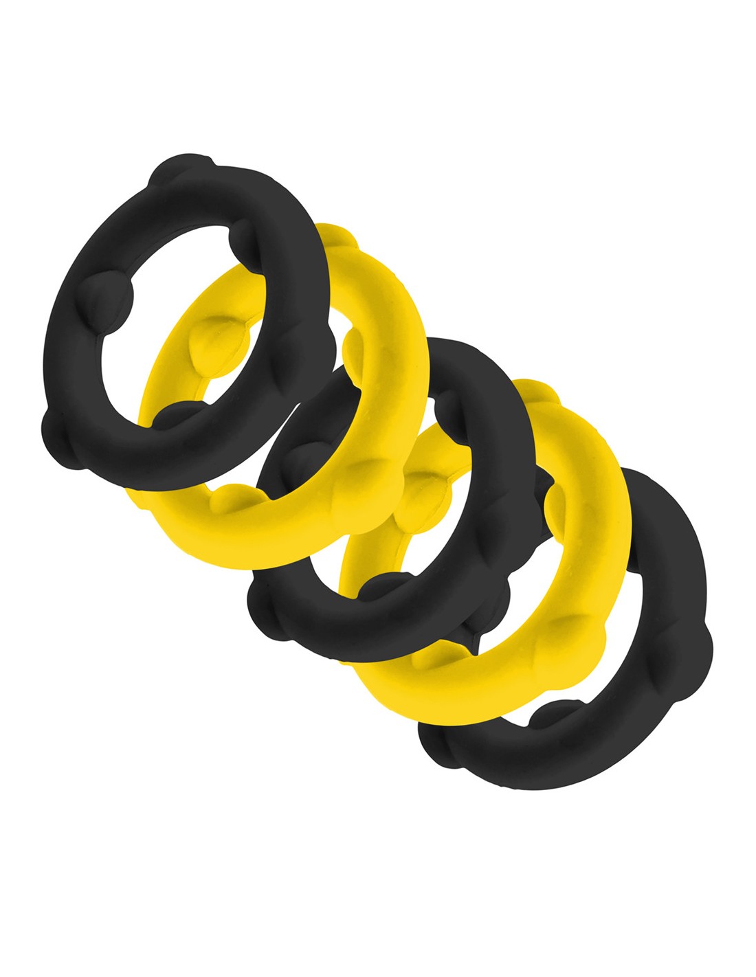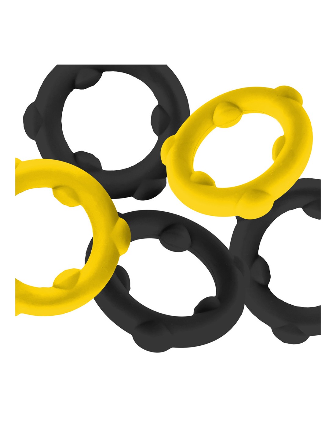 Lot de 5 Cockrings Spinner 25 mm Noir-Jaune