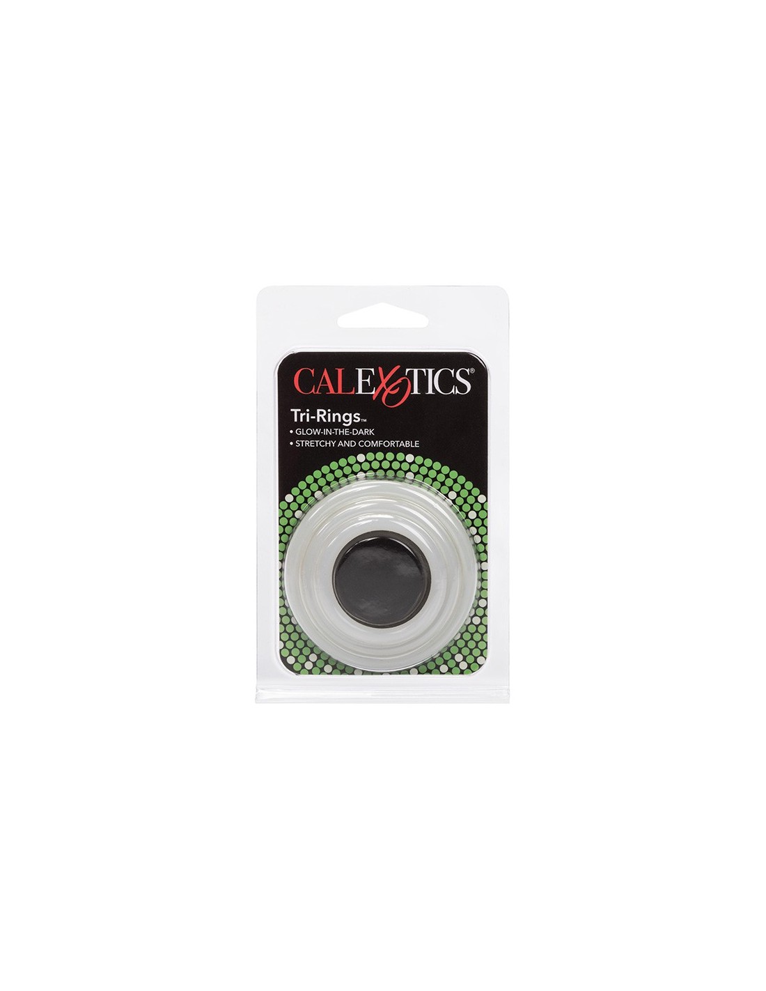 CalexoticsCe lot est composé de 3 anneaux de sexe en silicone avec une particularité. En effet, les cockrings sont phosphorescents.Cela permet d'amener de la fantaisie pendant l'acte sexuel.Il permet de rendre l'érection plus dure et d'avoir en plus du fun... Les cockrings mesurent 3.25, 3.5 et 4.5cm de diamètre