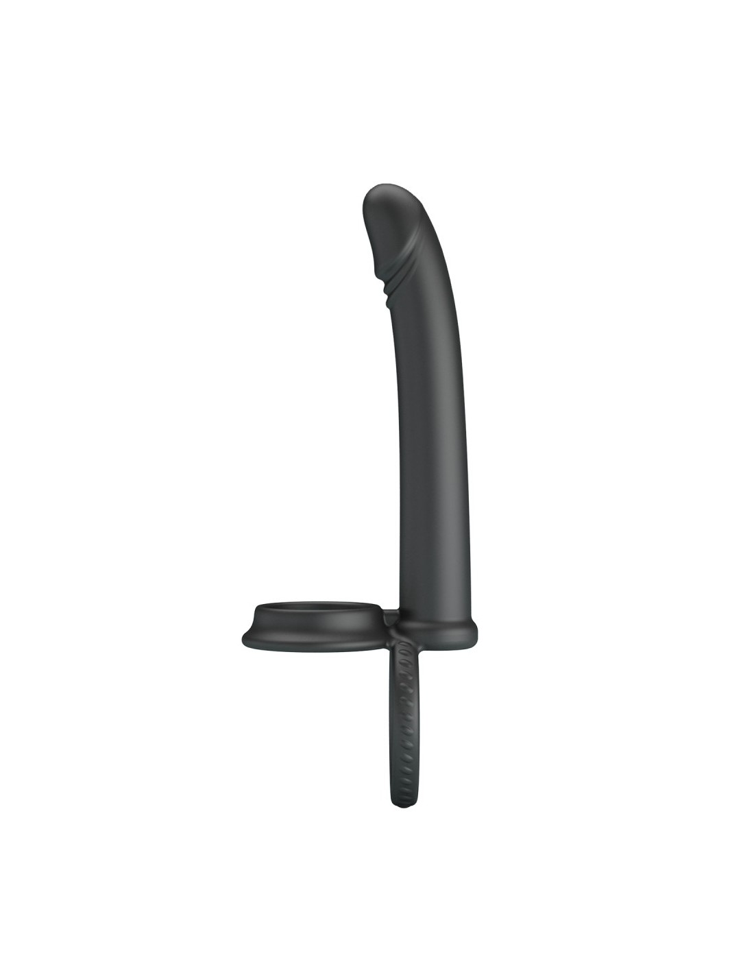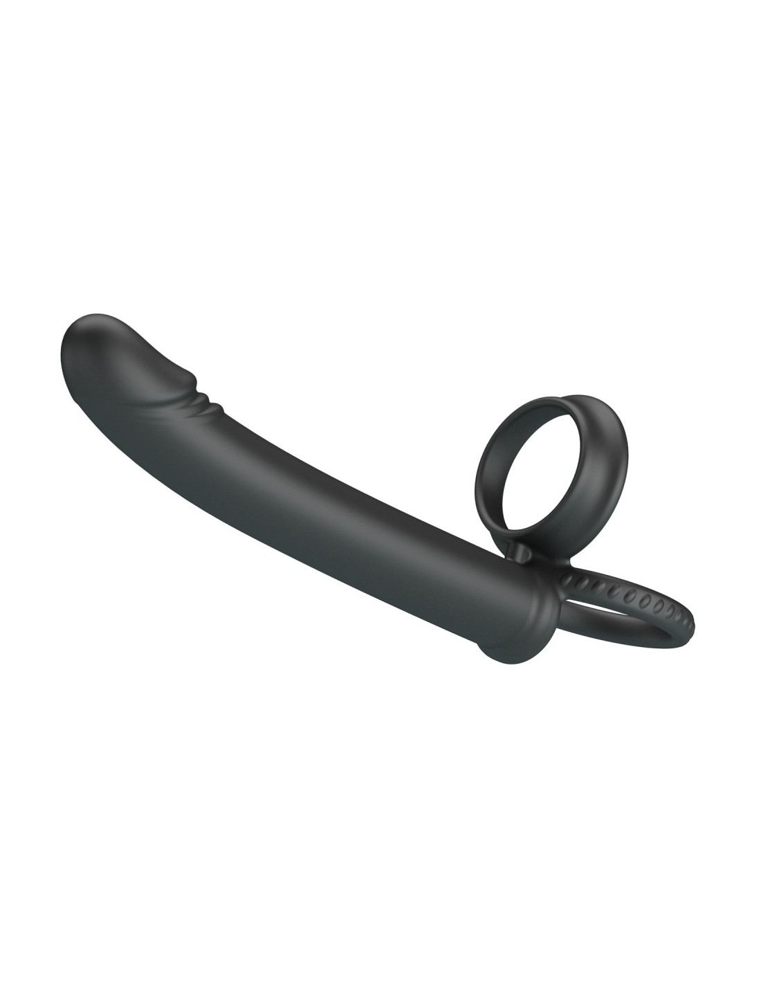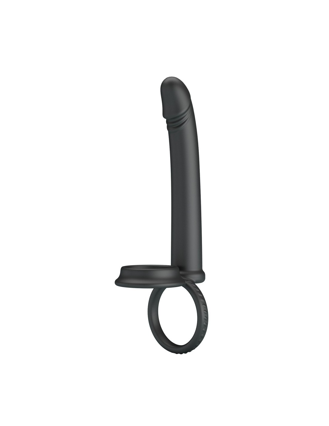 Accessoire pour la double pénétration mesurant 12 cm de longueur et 2 cm de largeur.Surface lisse. Avec deux anneaux de et 40 mm pour le maintien. En silicone.