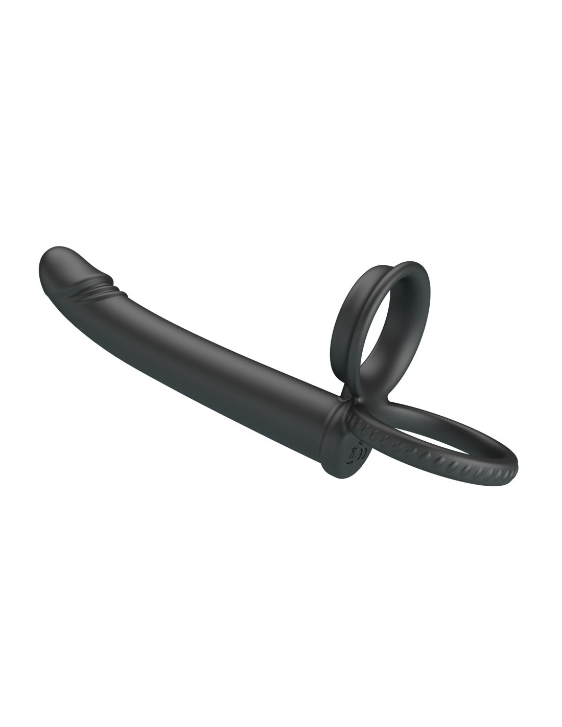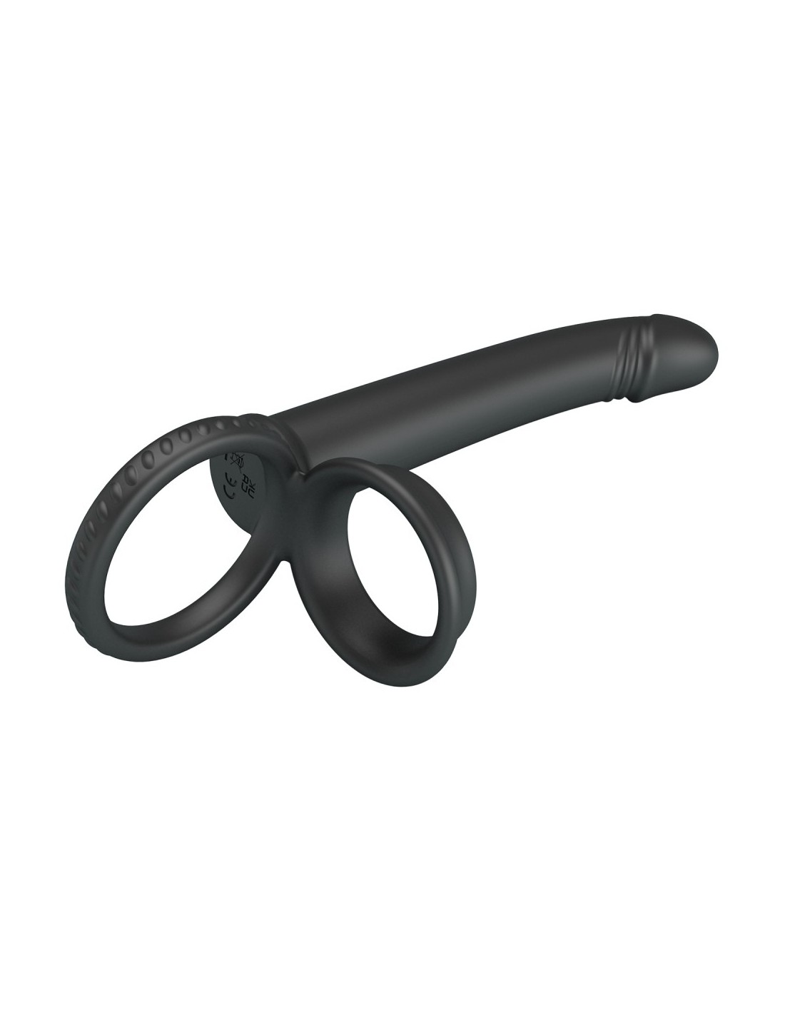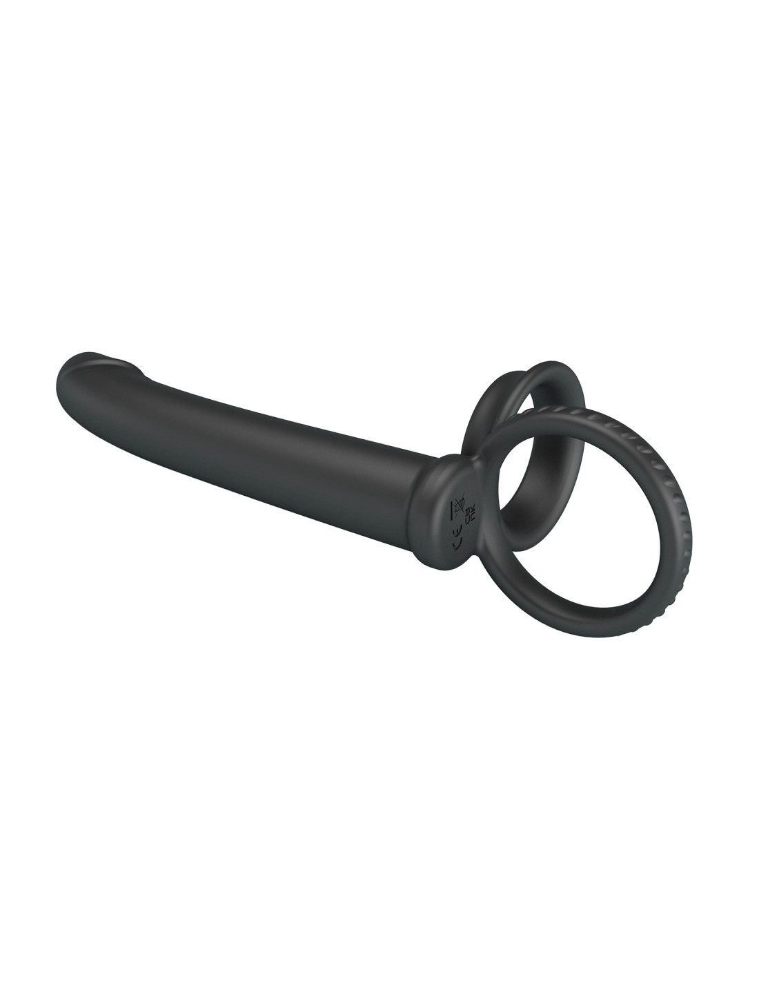 Accessoire pour la double pénétration mesurant 12 cm de longueur et 2 cm de largeur.Surface lisse. Avec deux anneaux de et 40 mm pour le maintien. En silicone.