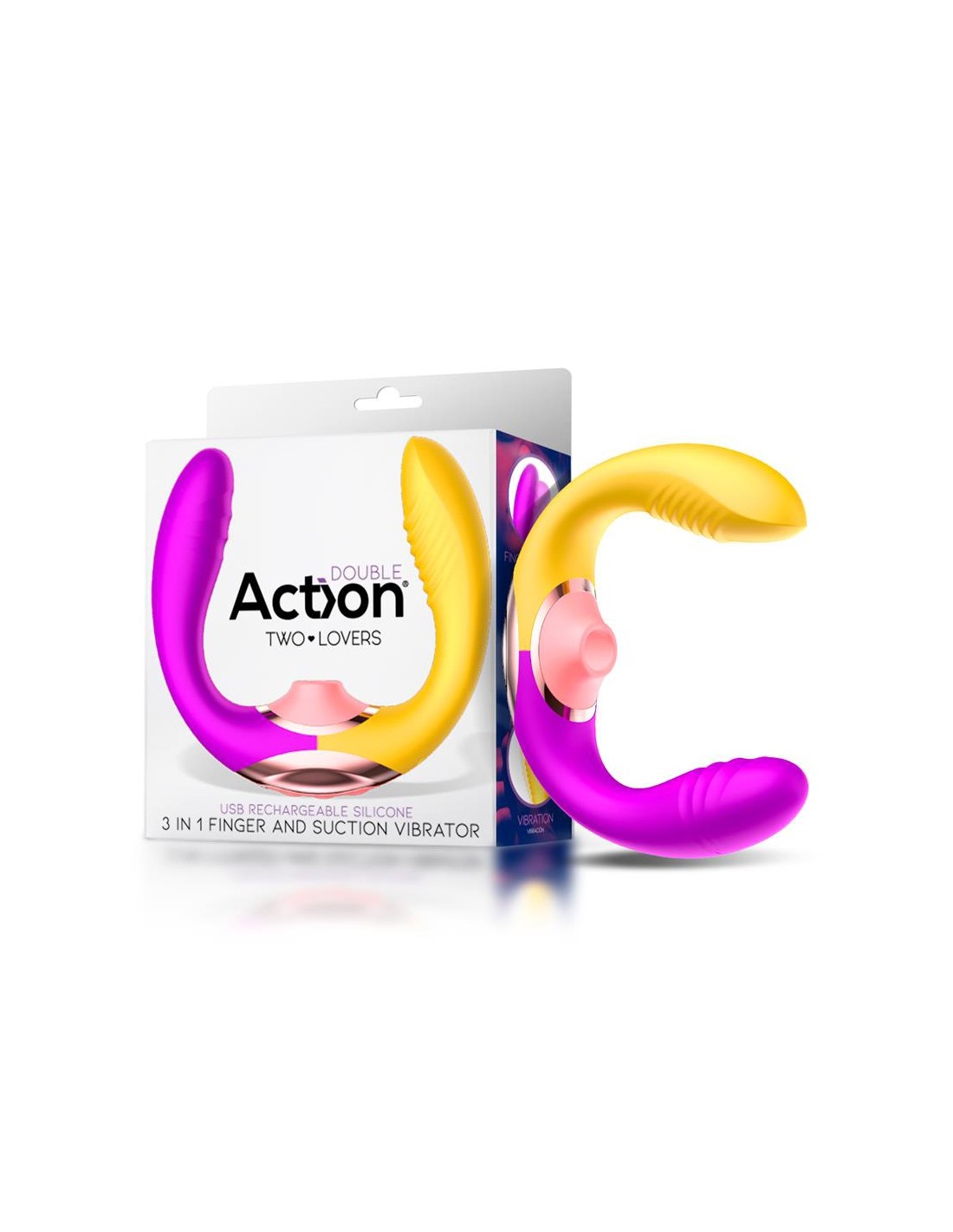 Le Two Lovers est un sextoy réalisé avec une forme originale et colorée.Il a une partie centrale qui stimule le clitoris avec 7 modes de succion.Les deux vibros ont des dimensions insérables de 10 x 2.5cm.Avec 7 mouvements de doigté et 10 vibrations.Les 3 moteurs sont indépendants.