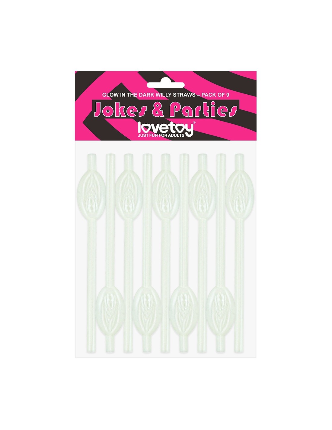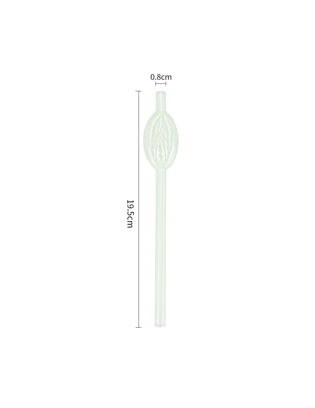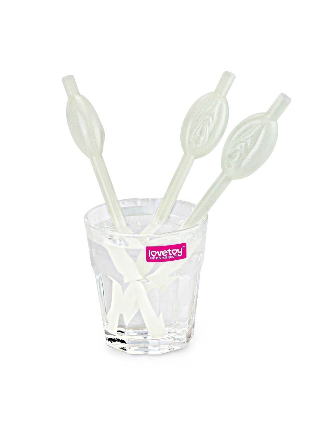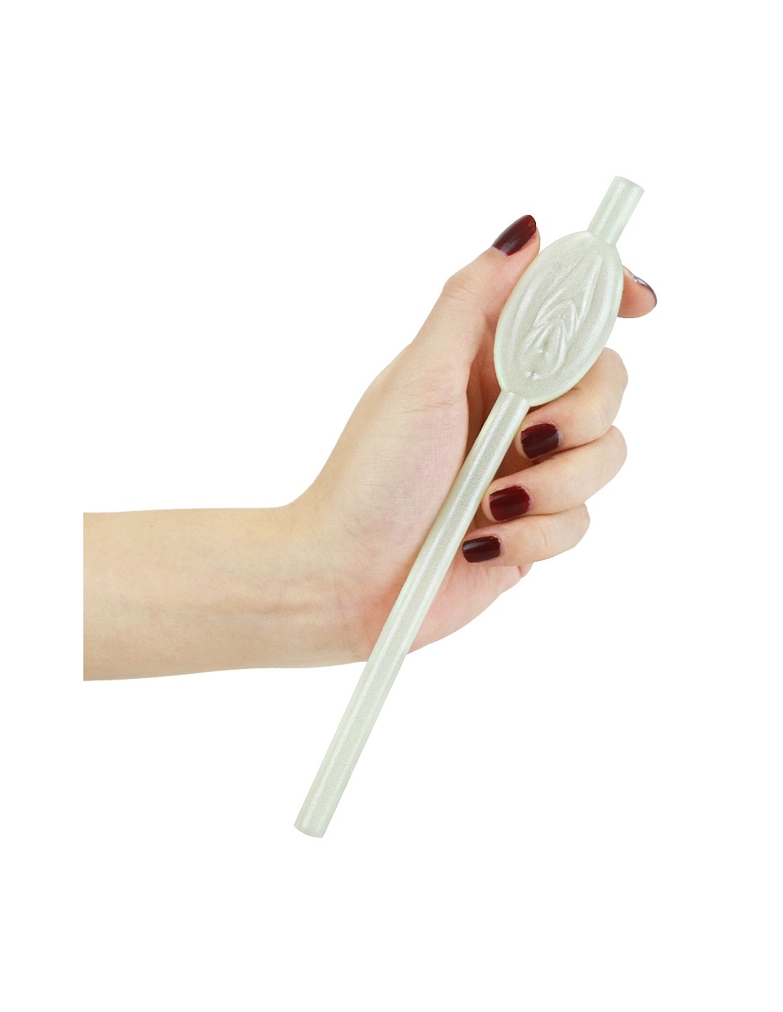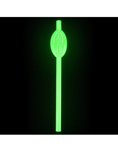 LoveToyCes pailles en forme de vulve brillent dans le noir. Elles sont idéales pour des moments funs !Longueur de 19cm. Fabriquées en plastique. Réutilisable