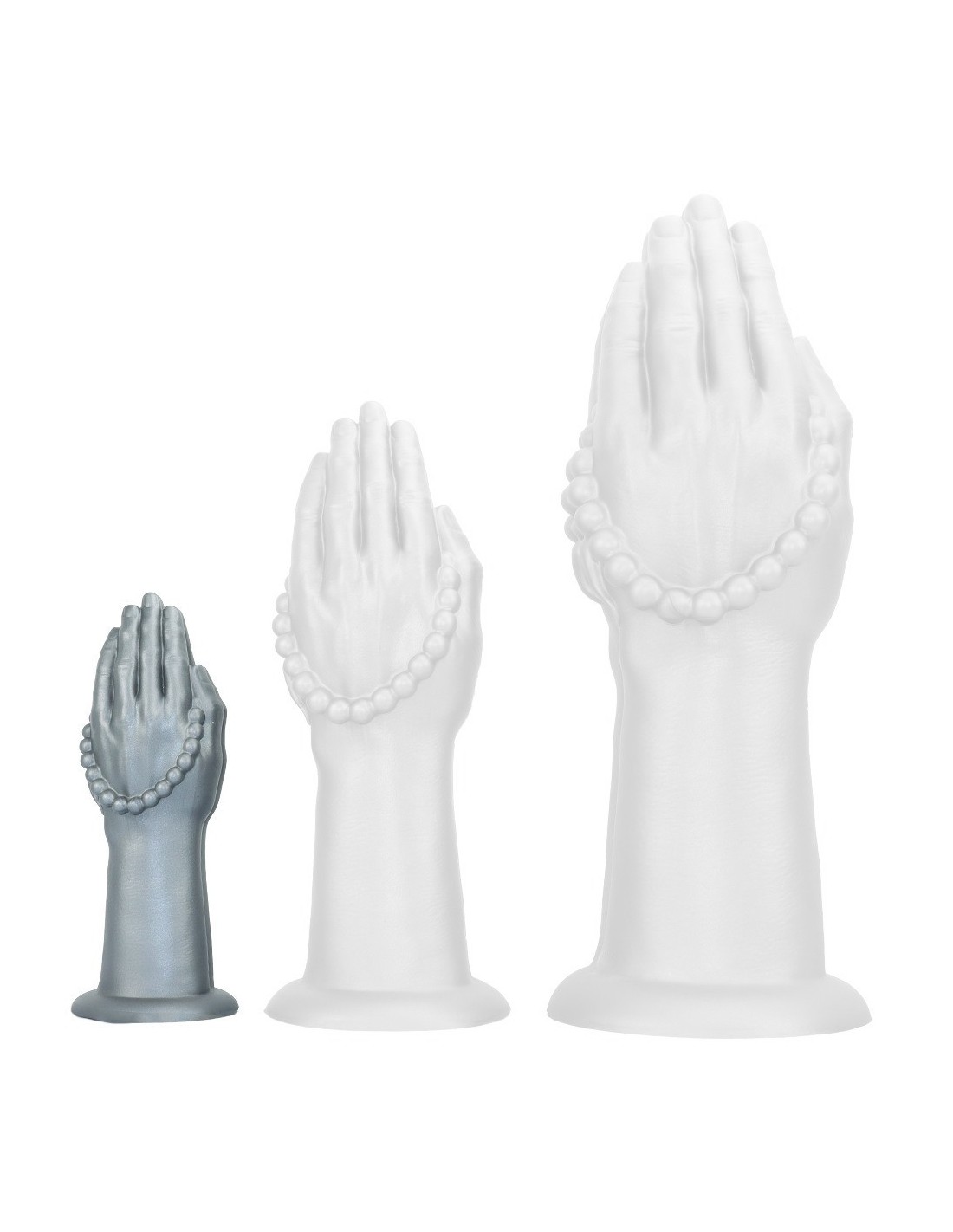 FistXXLGode mains jointes avec chapelet. Longueur insérable de 17 cm et largeur de 3 à 6 cm. En silicone, avec base ventouse.