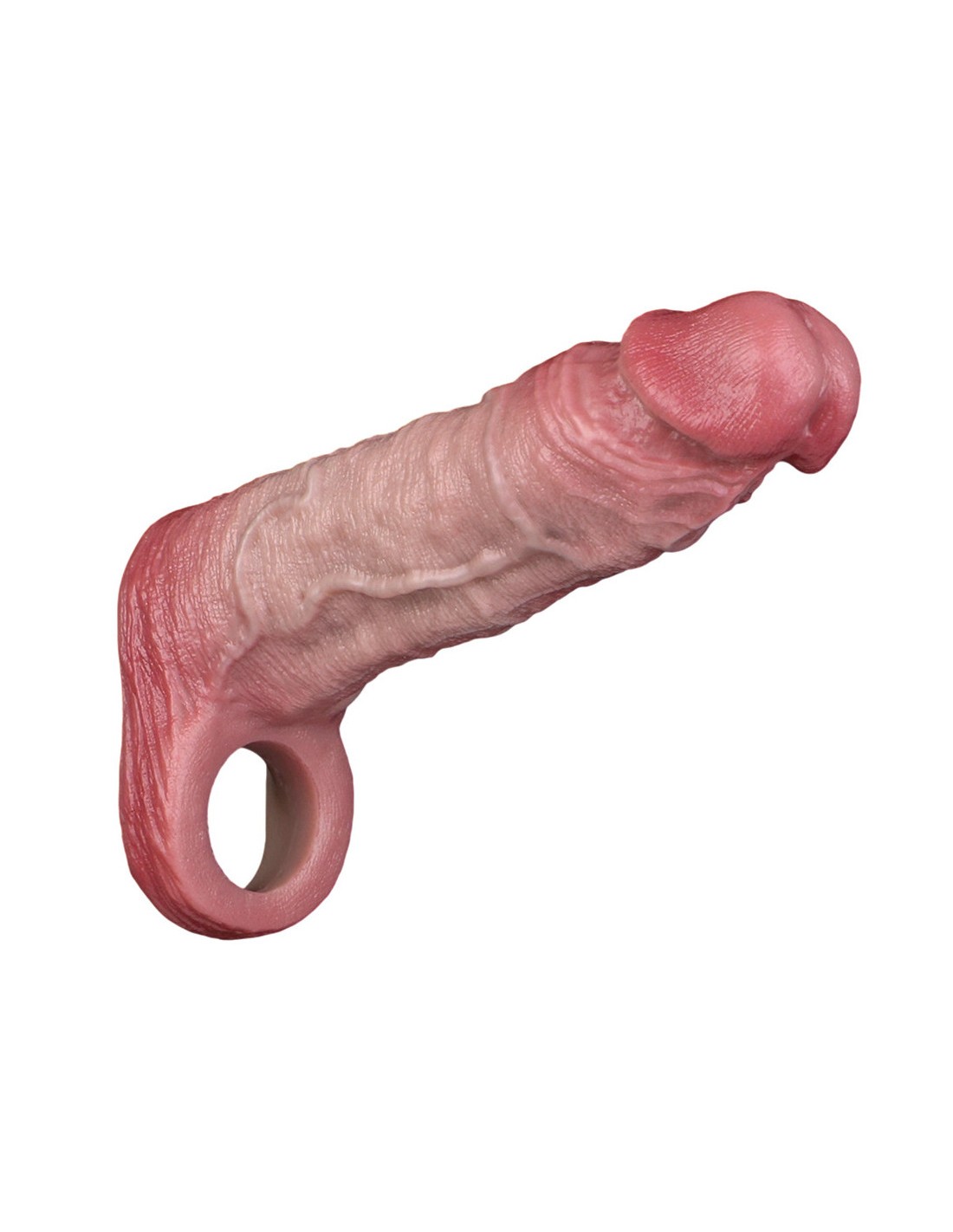 ExtendMyDickGaine à pénis avec surface texturée et gland décalotté. Longueur insérable de 16 cm et largeur de 4 à 5 cm. Gaine : 14 x 3 cm. En silicone, avec anneau de maintien.