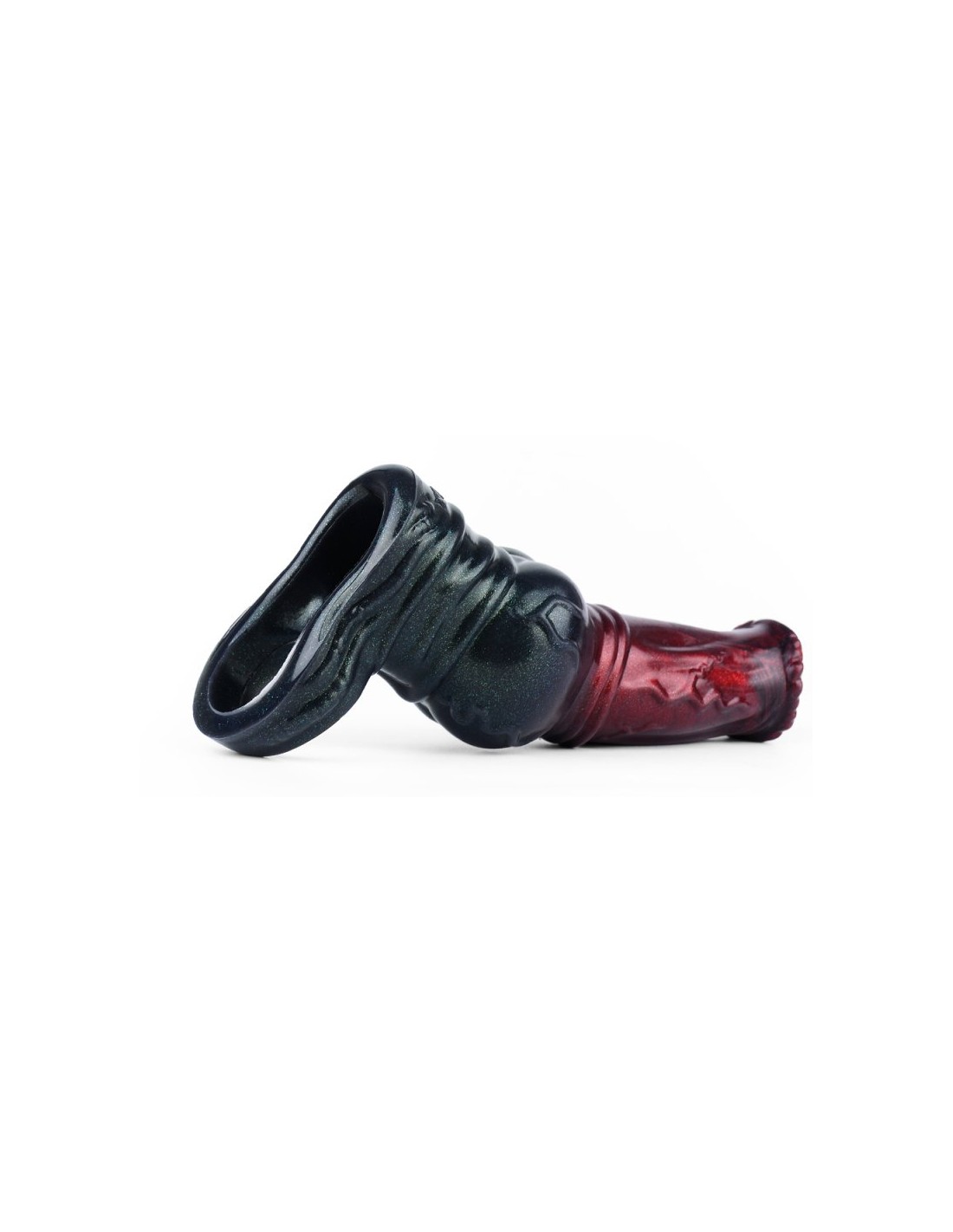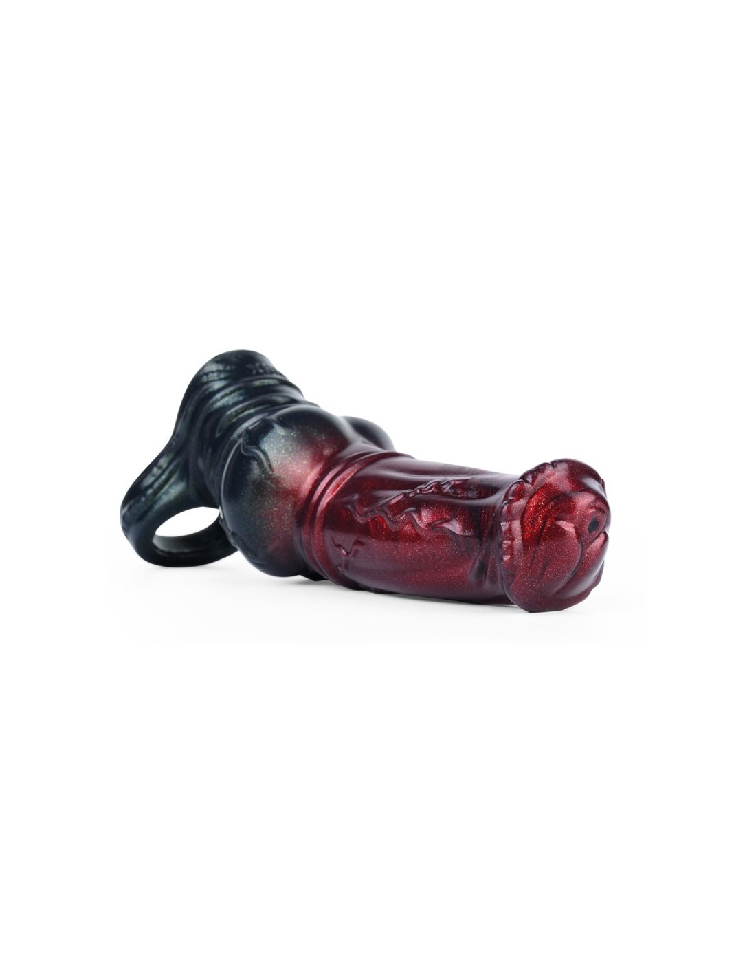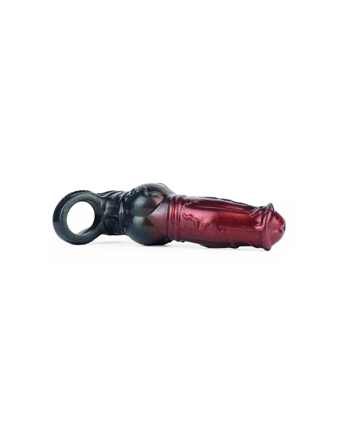 Dimensions : Longueur totale 18 cmLongueur insérable 18 cmLongueur intérieure de la gaine 15 cmDiamètre intérieur 30 mmLargeur mini 4 cmLargeur maxi 6 cmAnneau de 28 mmConseils d'utilisation : le nettoyer après chaque utilisation avec de l'eau tiède légèrement savonneuse et le laisser sécher à l'air librene pas mettre en contact prolongé avec du lubrifiant à base de silicone pour ne pas endommager la matièrele placer, si nécessaire, avec une noisette de lubrifiant à base d'eaune pas garder plus de 30 minutesle conserver dans un endroit propre, sec et à l'abri de la chaleur, sans contact avec un autre objet.