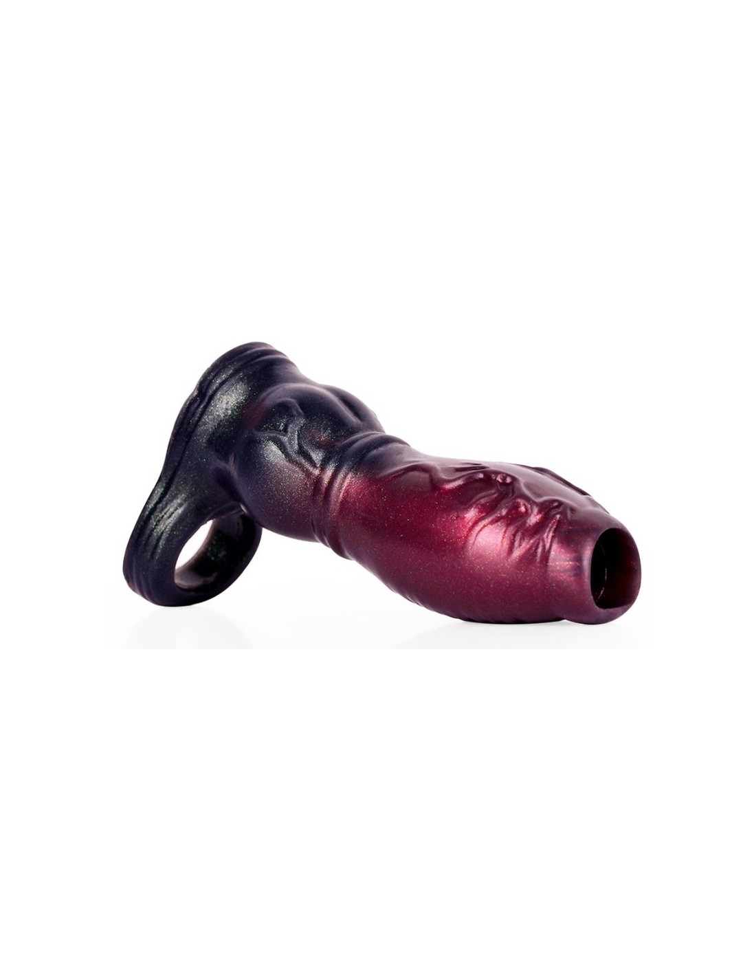 Manchon avec relief à l'intérieur comme à l'extérieur. Longueur insérable de 12 cm et largeur de 3.2 à 4.5 cm.Diamètre de 30 mm et anneau de 28 mm.En silicone.