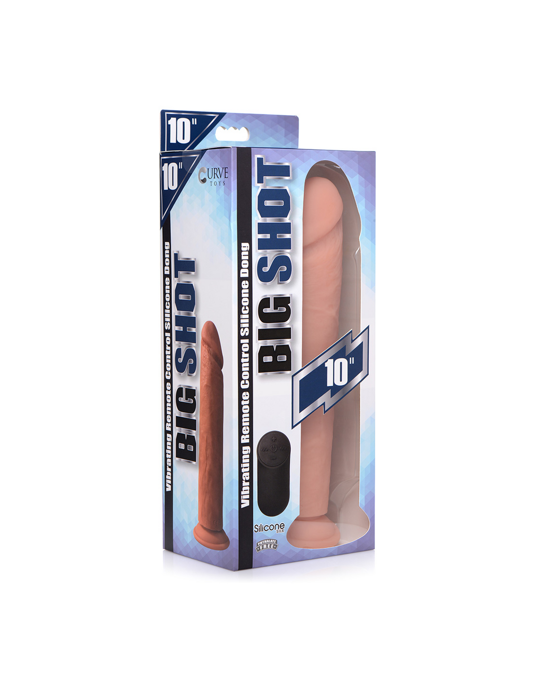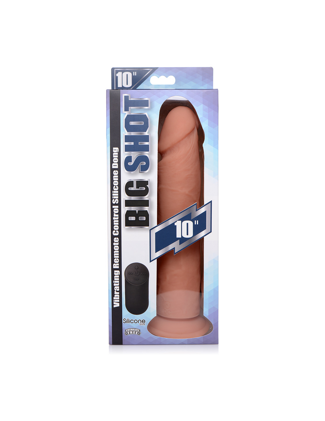Gode avec gland décalotté et surface veinée.Longueur insérable de 24 cm et largeur de 5 à 5.3 cm.7 modes de vibrations et 3 intensités.En silicone, avec base ventouse et télécommande
