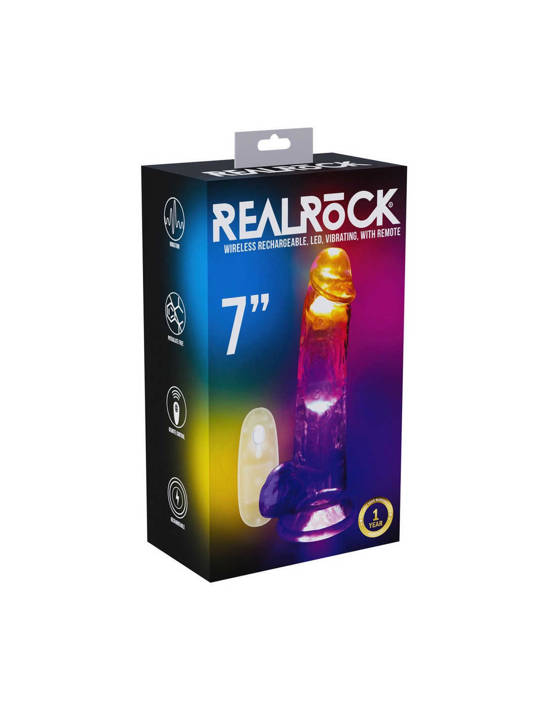 Real Rock CrystalGode avec gland décalotté et surface texturée.Longueur insérable de 15 cm et largeur de 3.8 à 4 cm.10 modes de vibrationsEn TPE, rechargeable, avec base ventouse et télécommande