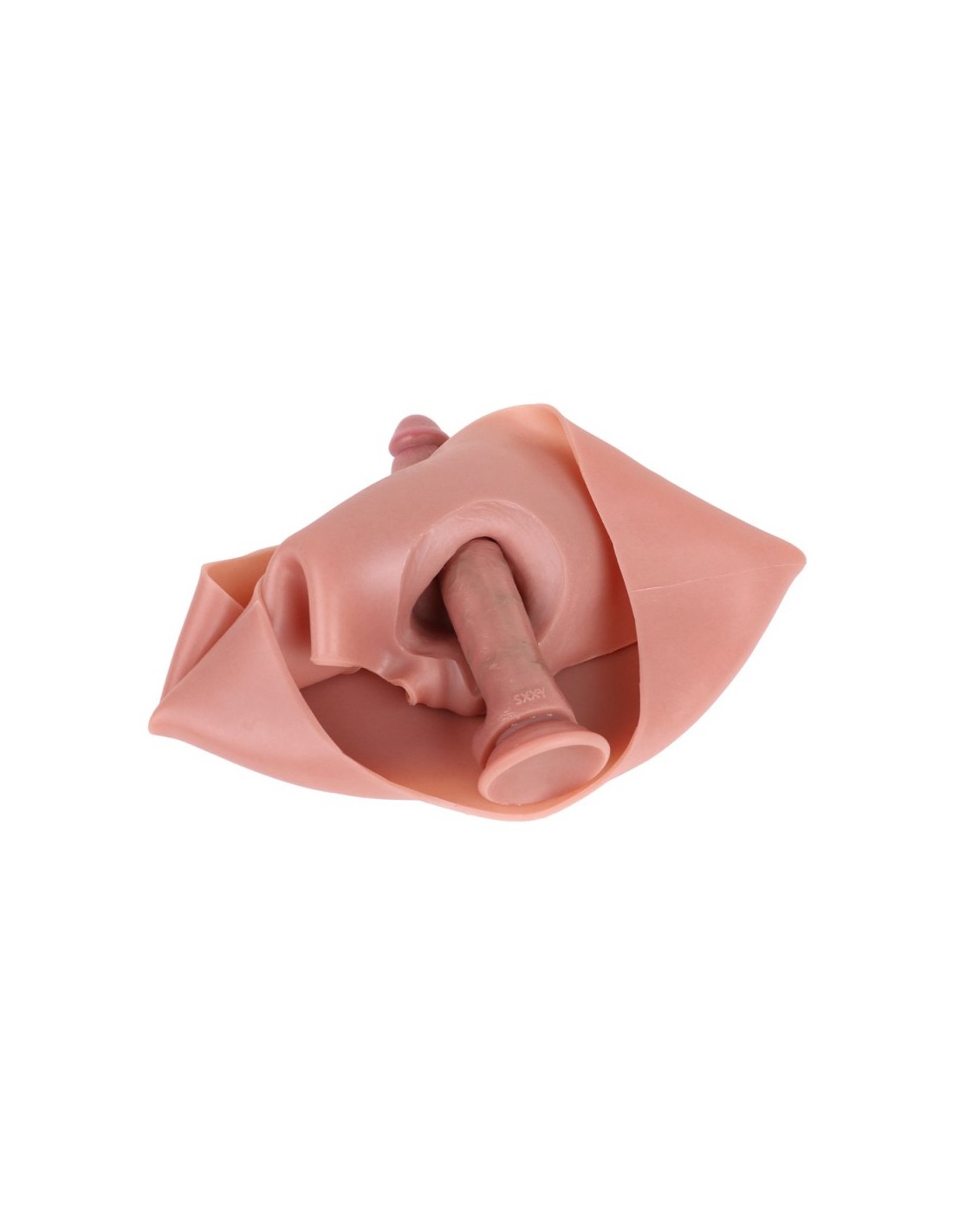 CrossGearXGode ceinture creux avec gland décalotté, forme très incurvée et surface texturée.Tour de taille de 72 cm, environ.Longueur insérable de 15 cm et largeur de 4 à 5 cm.Gaine de 13 cm pour une largeur de 3 cm.En silicone.