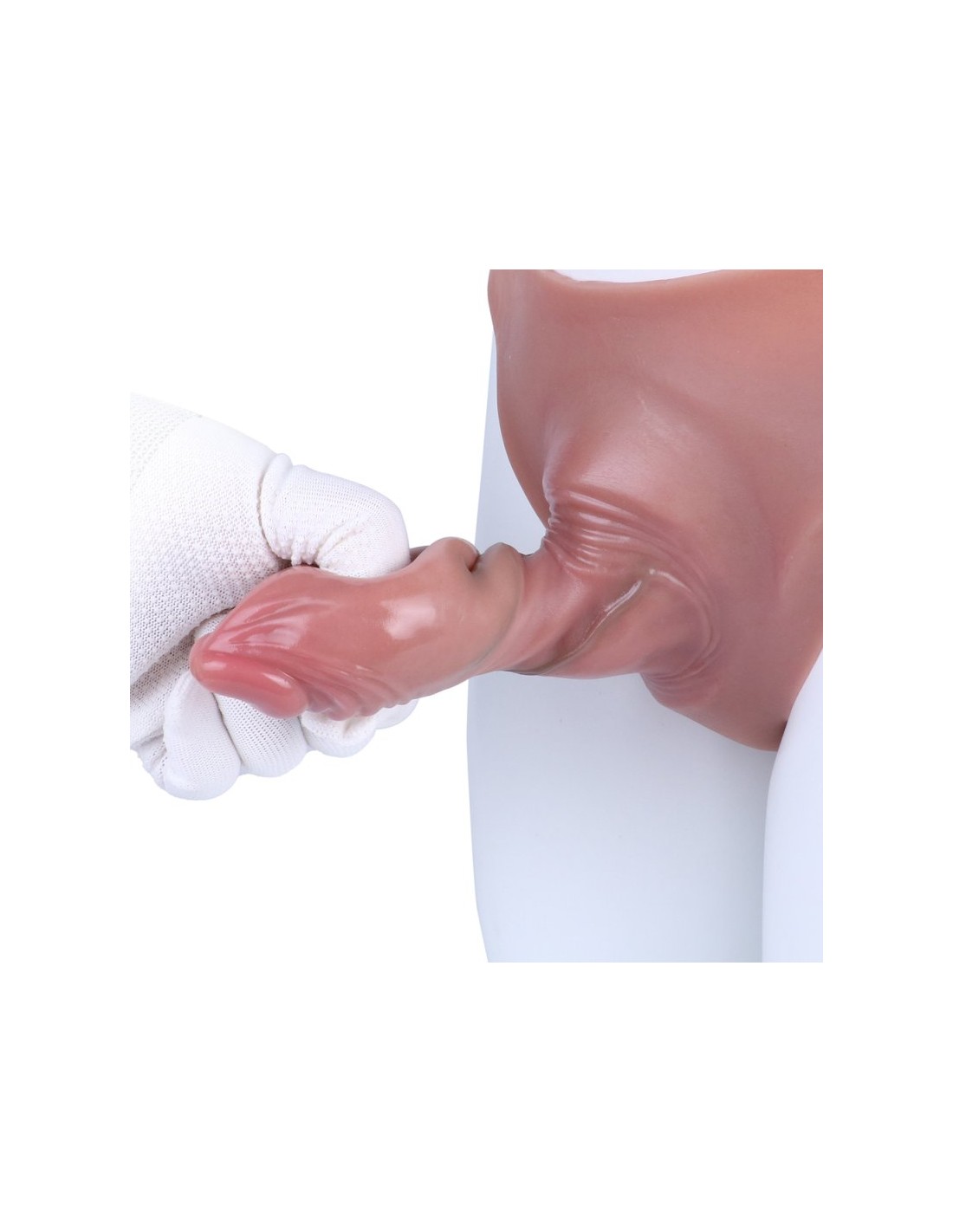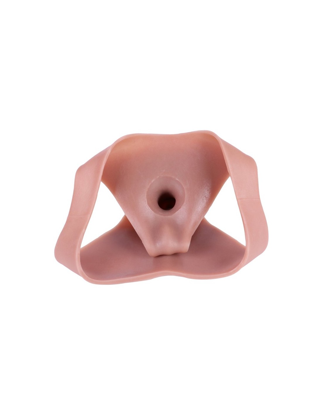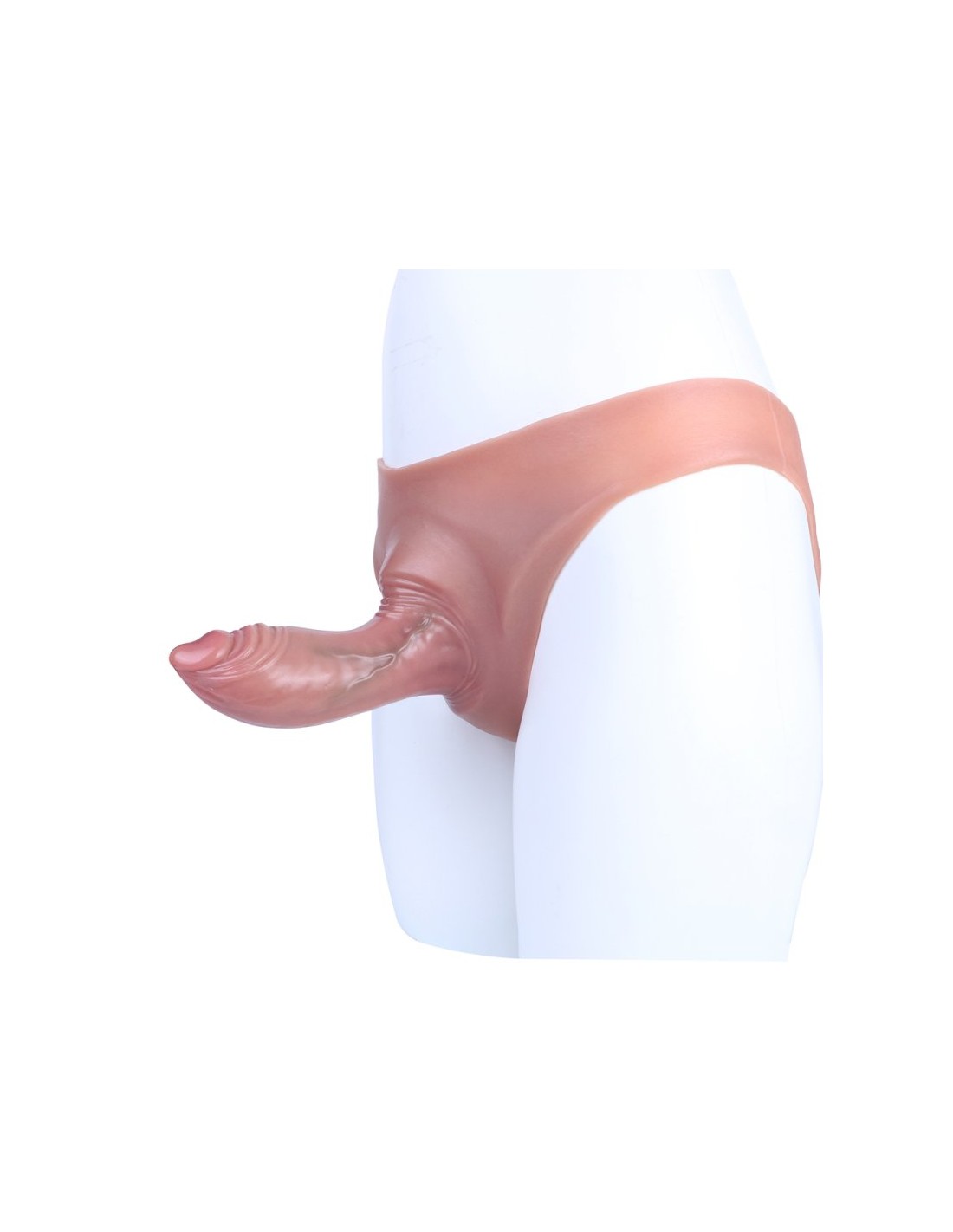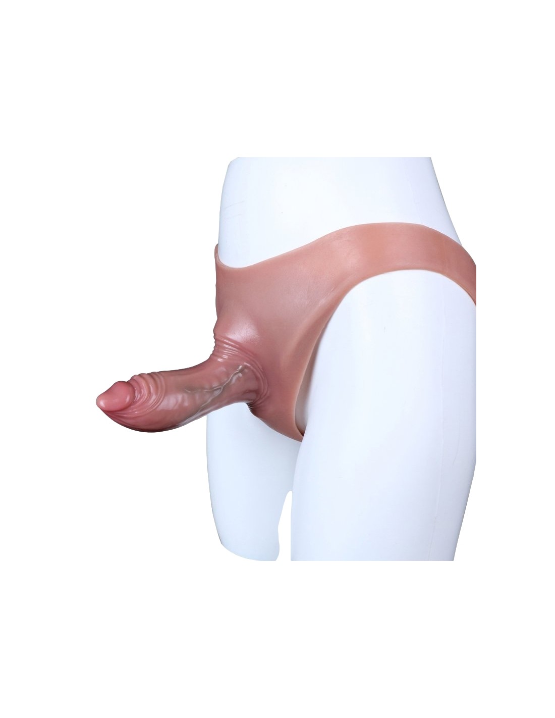 Gode ceinture creux, avec gland décalotté et surface texturée.Longueur insérable de 14 cm et largeur de 3.3 à 5.3 cm.Gaine : longueur insérable de 11 cm et 2.8 cm de large.Tour de taille de 72 cm.En silicone.
