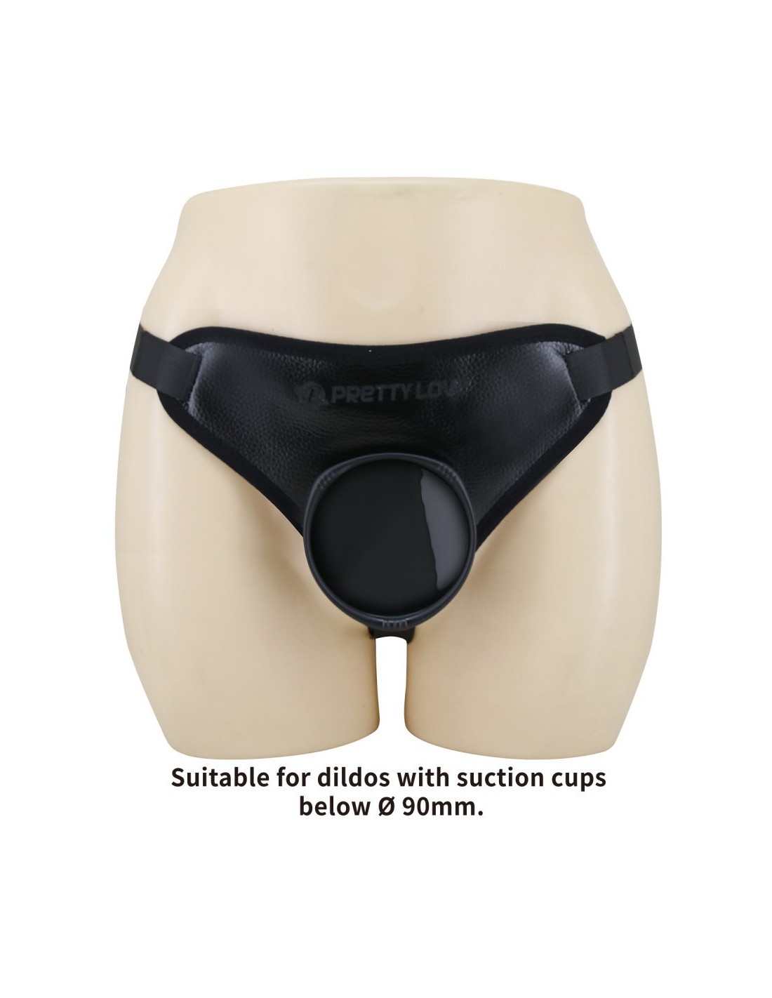 Pretty LoveGode ceinture ajustable de 60 à 120 cm à la taille.Gode amovible d'une longueur insérable de 12 cm et largeur de 4.2 à 4.3 cm.En silicone.