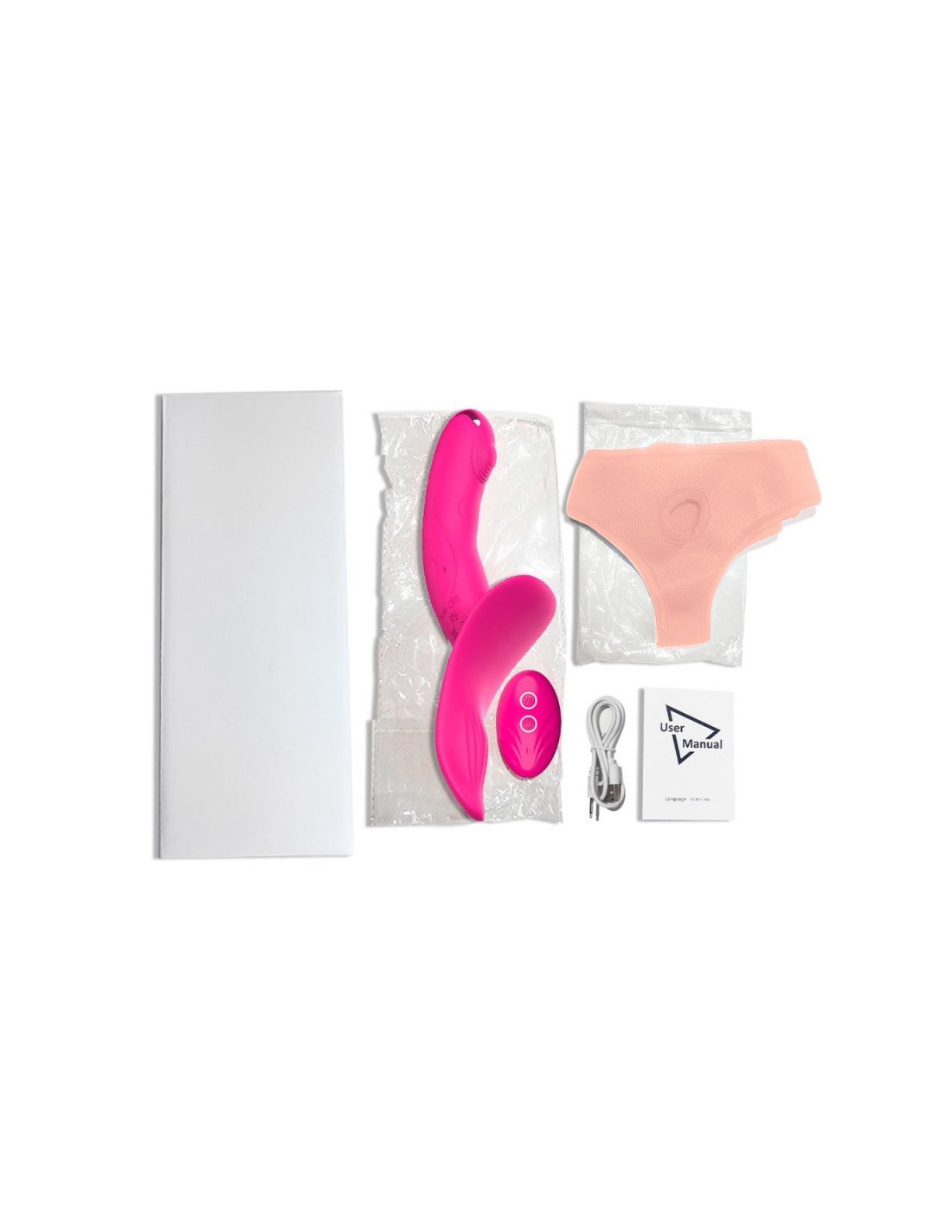 harnais élastique ajustable jusqu'à 80 cmdouble sextoy avec une partie insérable et une partie bombée pour la porteuselongueur insérable de 13 cm et largeur de 3.1 à 3.4 cm7 modes de vibrations