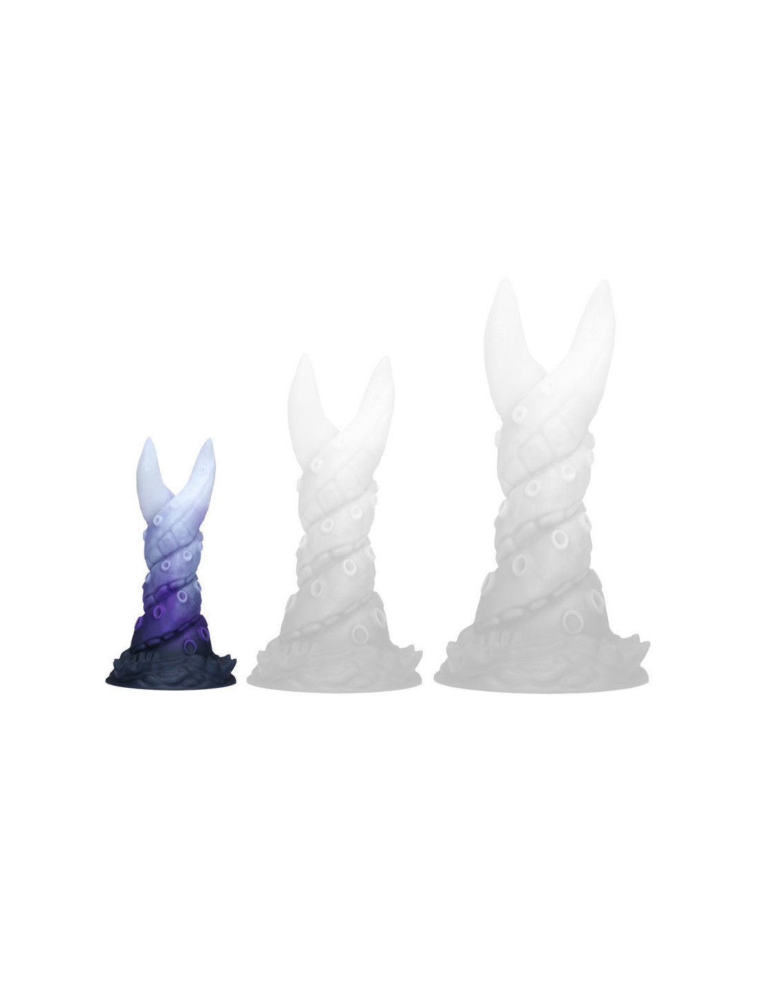 Anal PredatorGode avec deux tentacules, aux multiples reliefs. Longueur insérable de 16 cm et largeur de 6 à 4 cm.En silicone, avec base ventouse.