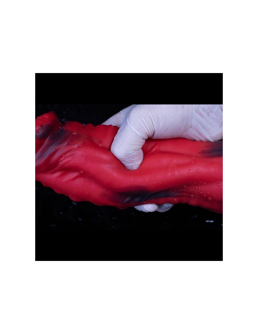 Gode avec une longueur insérable de 20 cm et une largeur maximale de 7 cm.Avec une forme épaisse et une surface texturée. Avec une base ventouse.En silicone.
