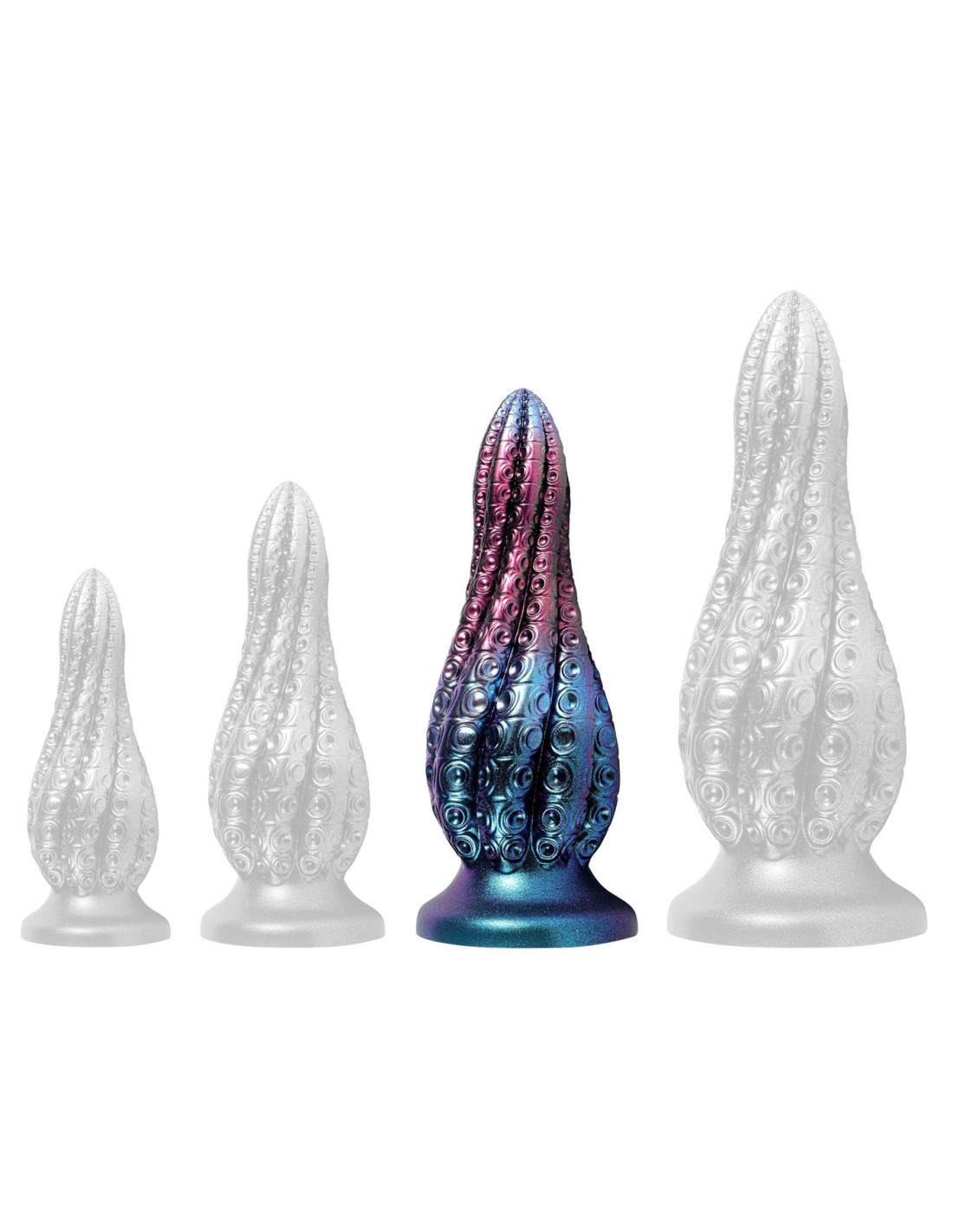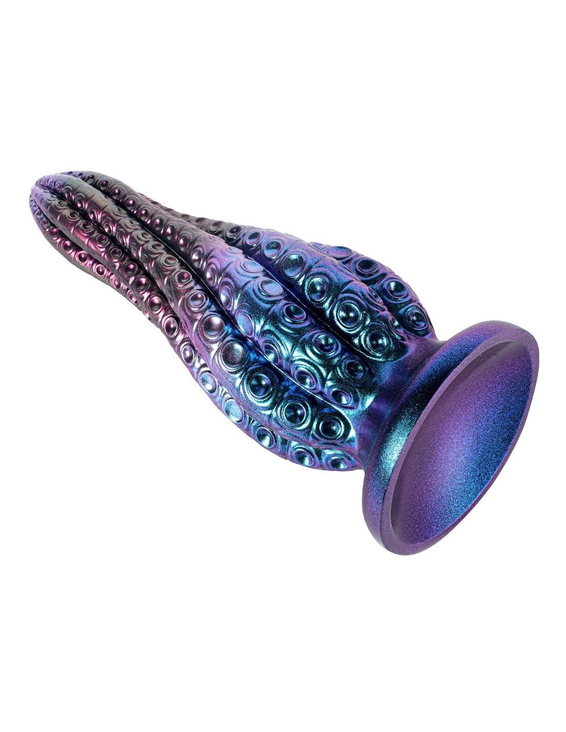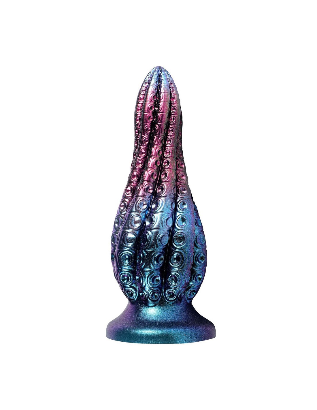 unicornyGode à la forme atypique et au relief texturé. Longueur insérable de 20 cm et largeur de 3.8 à 7.5 cm. En silicone.