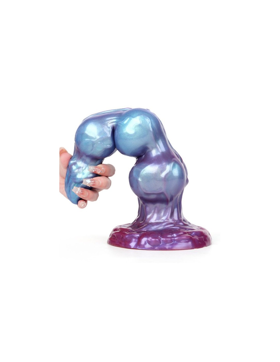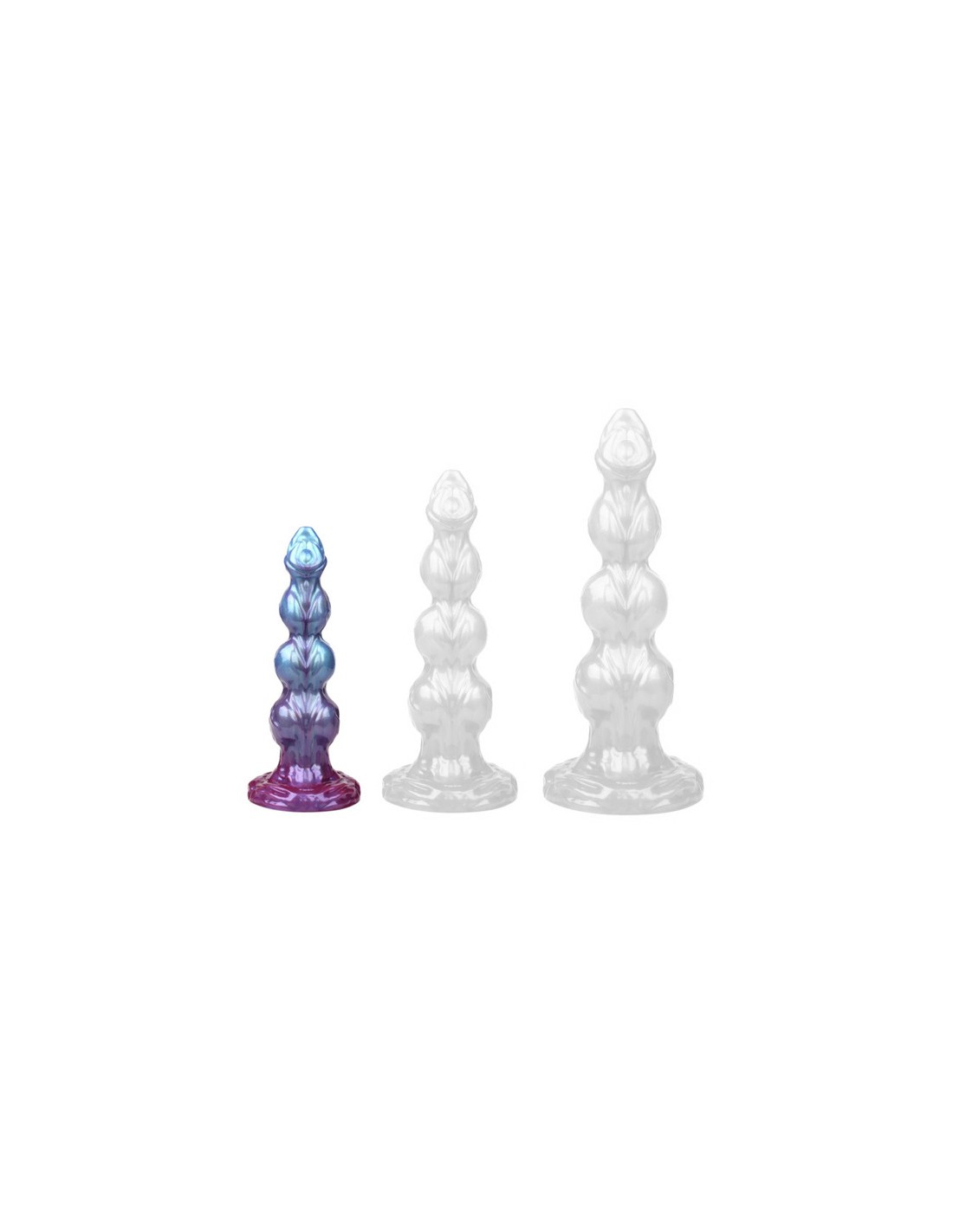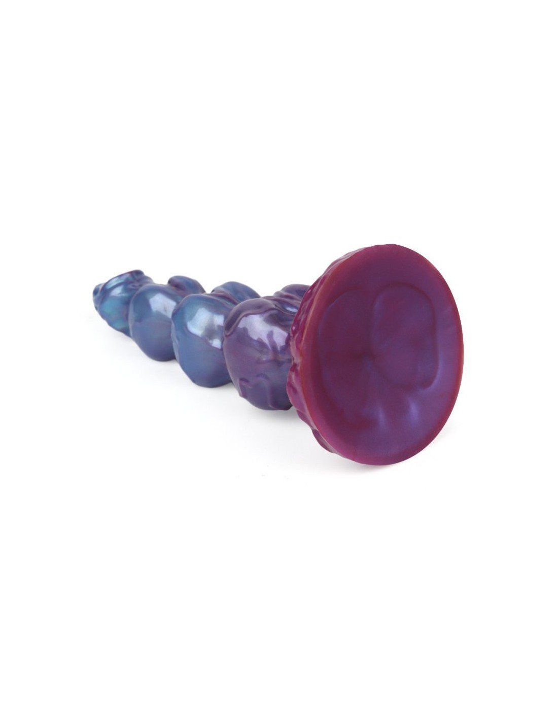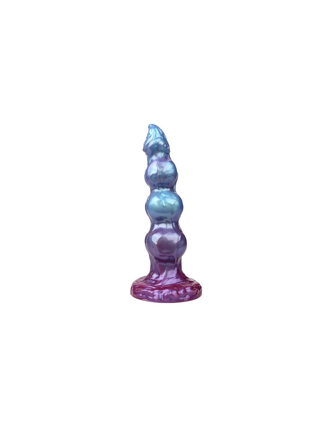 Anal PredatorGode avec 3 boules et un cône et aux multiples reliefs.Longueur insérable de 19 cm et largeur de 3.3 à 5.6 cm.En silicone, avec base ventouse