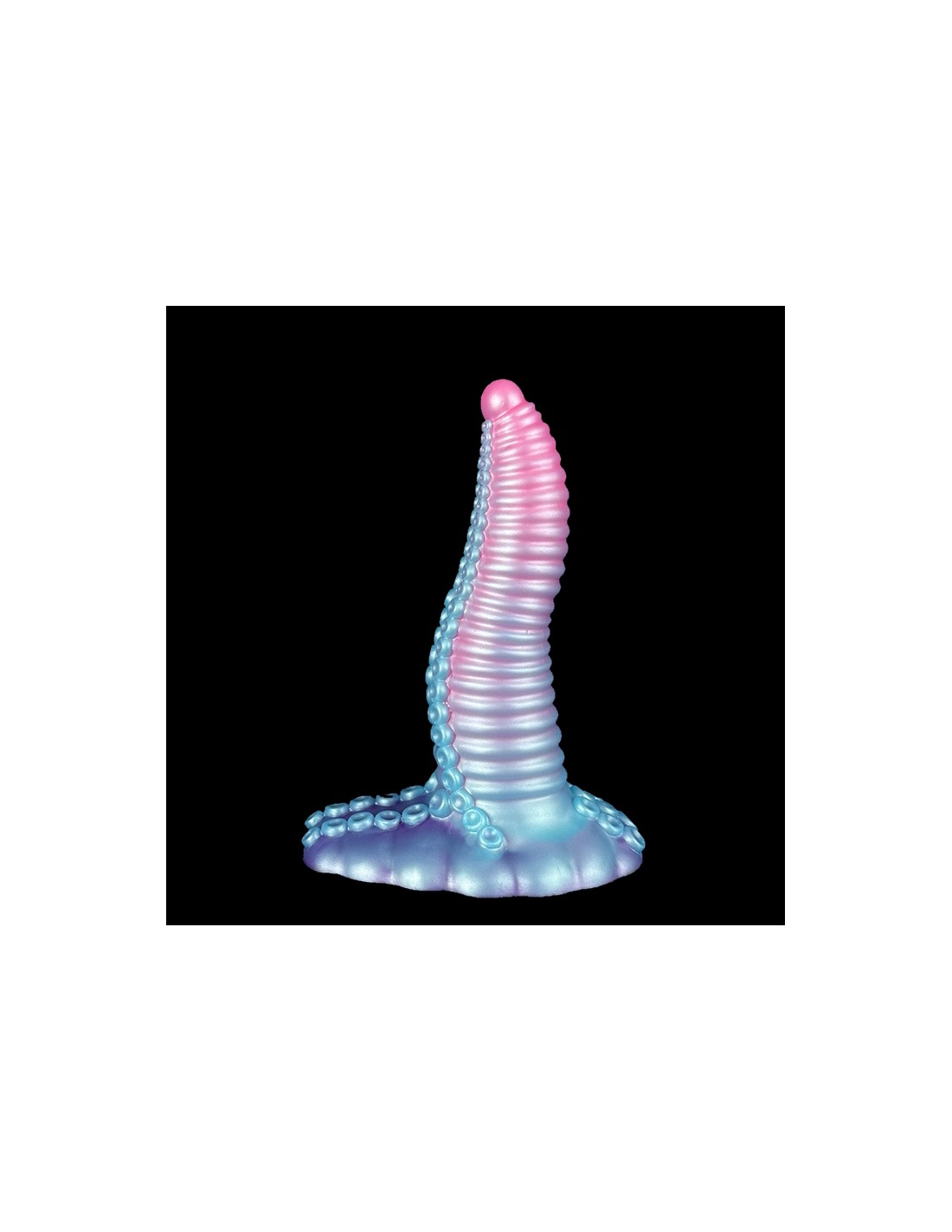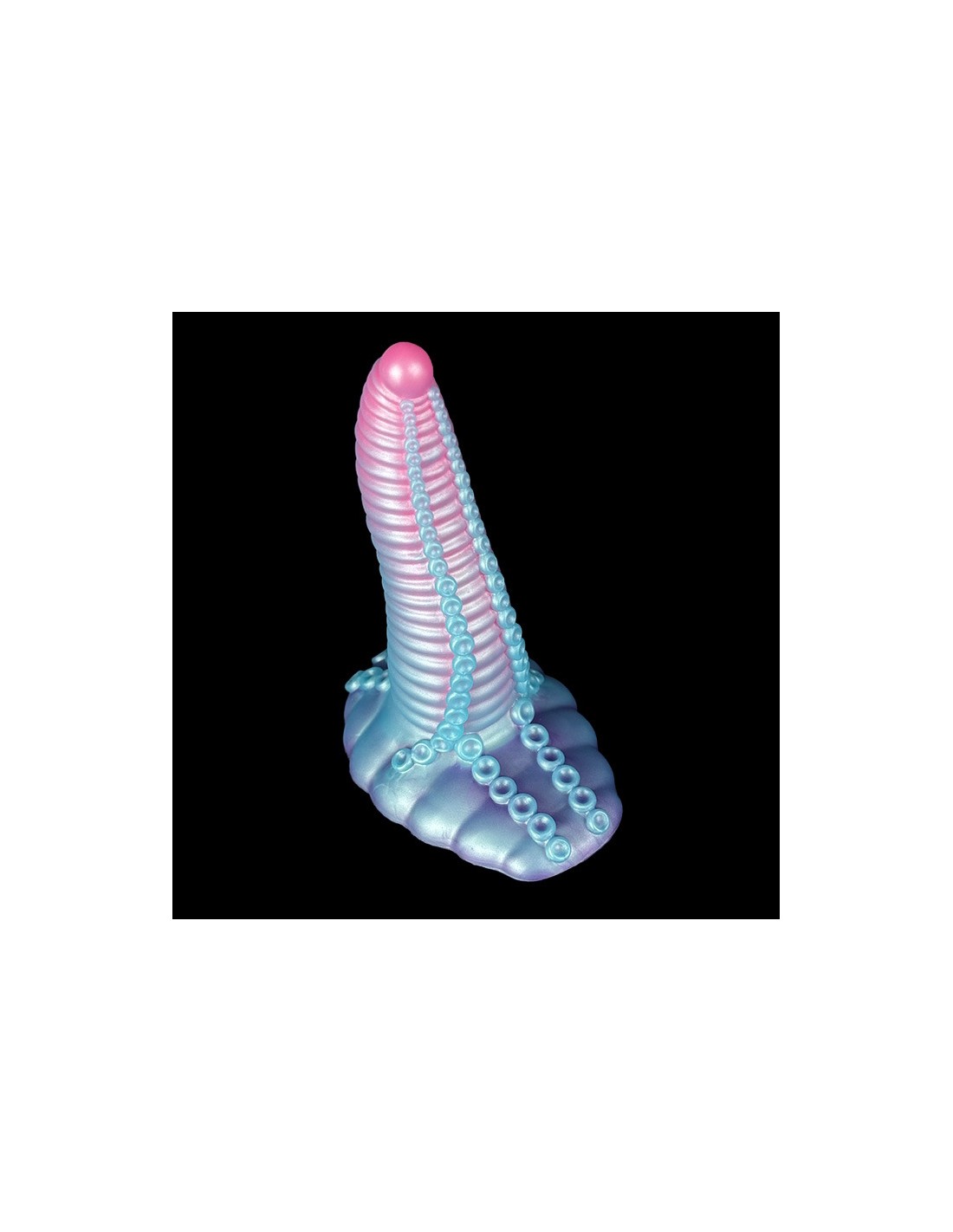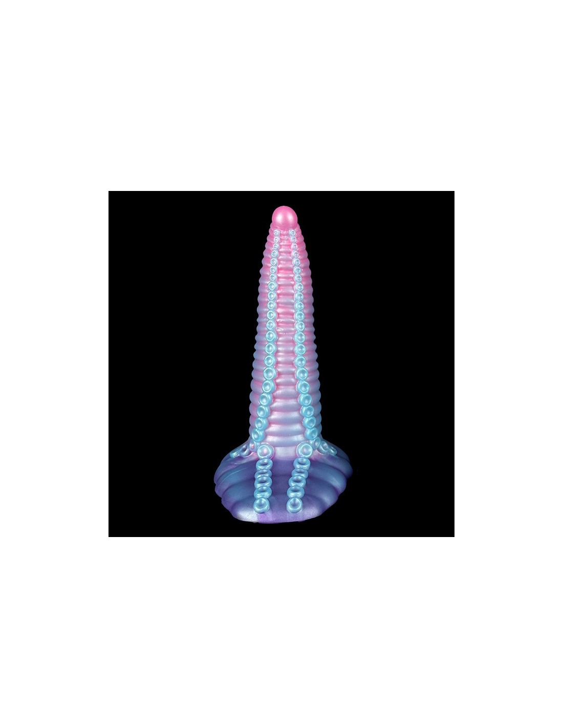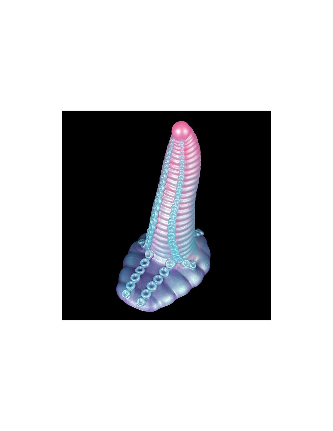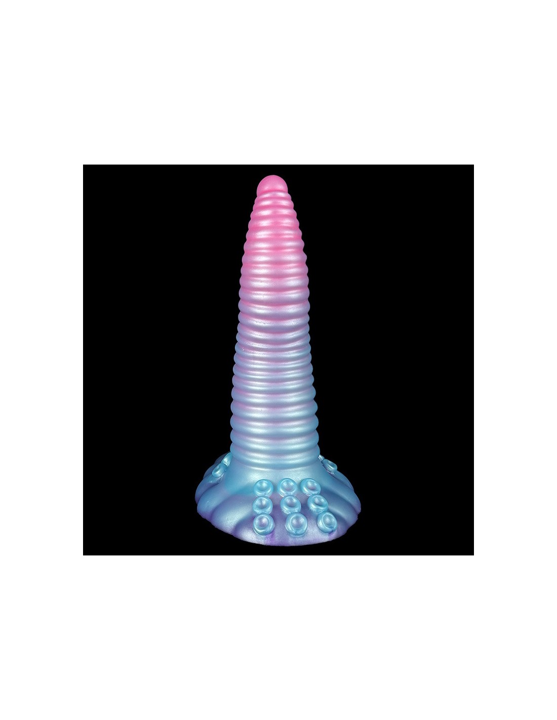 unicornyGode à la forme atypique et aux multiples reliefs.Longueur insérable de 18 cm et largeur de 2 à 5.5 cm.En silicone, avec base ventouse.