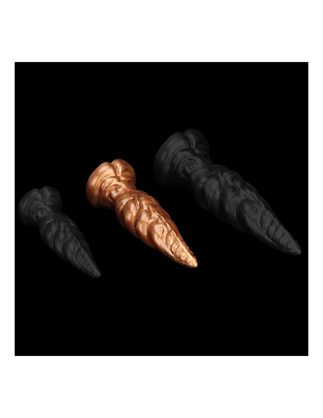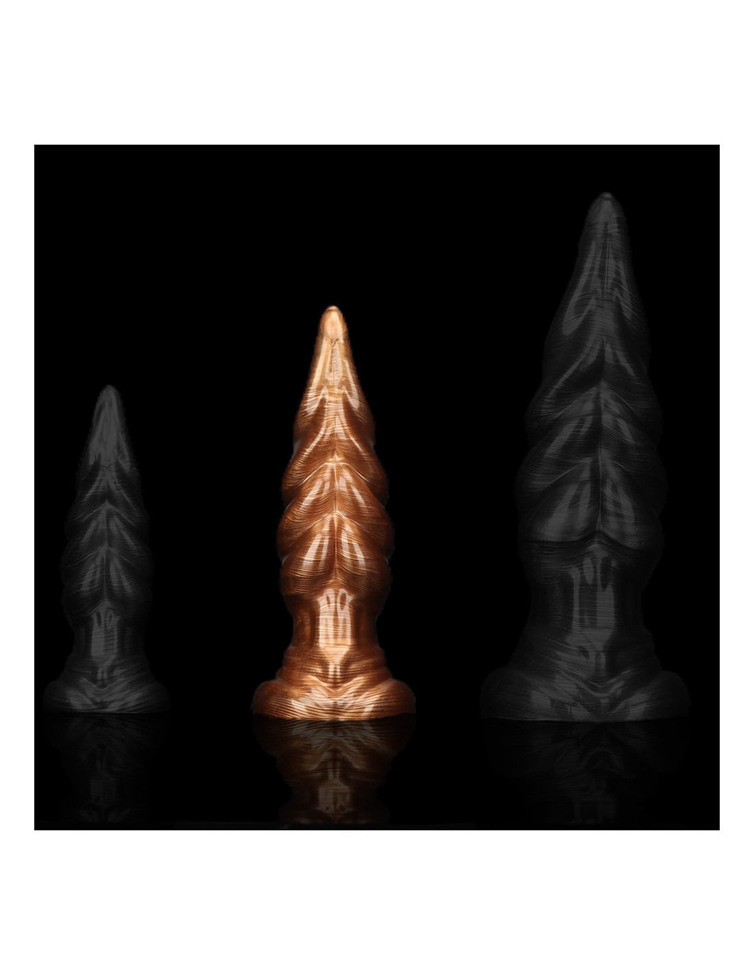 MetallicAnalPlug à la forme atypique, avec une surface texturée. Longueur insérable de 19 cm et largeur de 2.5 à 6.3 cm. En PVC.