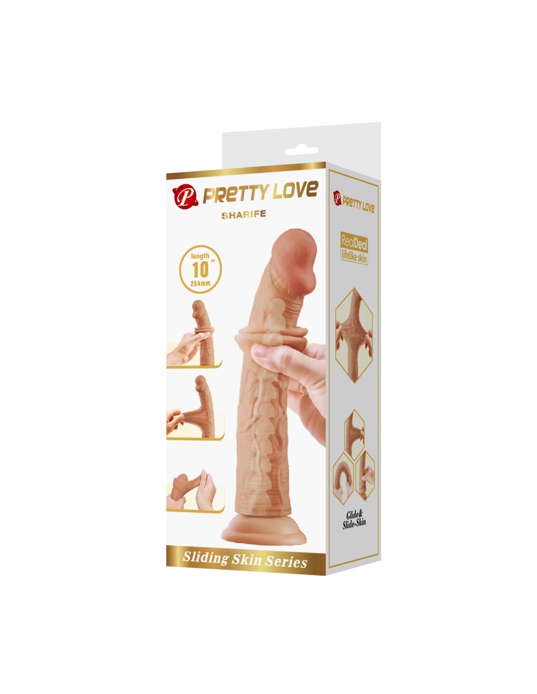 Pretty LoveGode avec une longueur insérable de 22 cm et une largeur maximale de 4.5 cm.La structure est souple et pliable.La surface se plisse pour apporter encore plus de réalisme. Avec la base ventouse. En matière TPR.