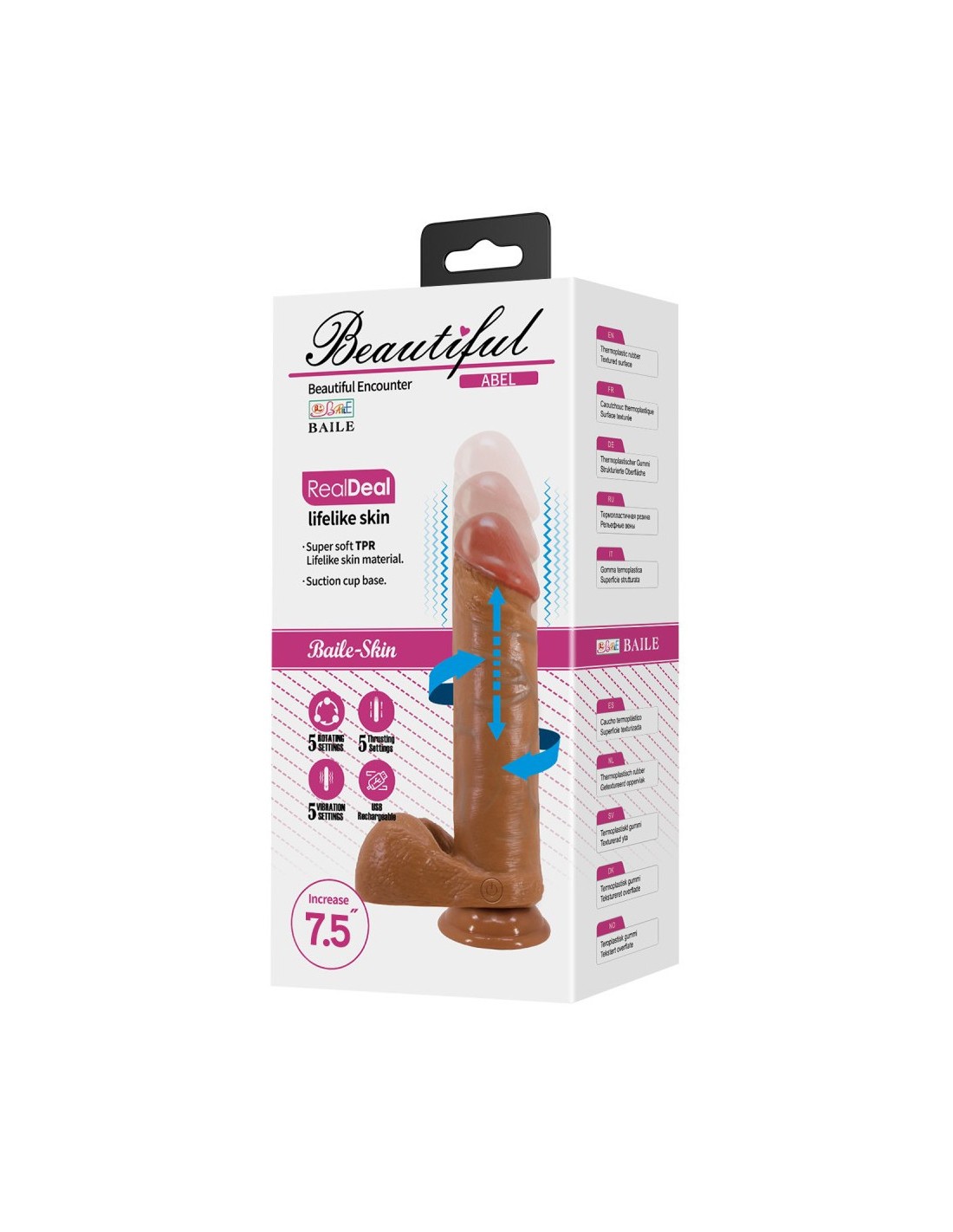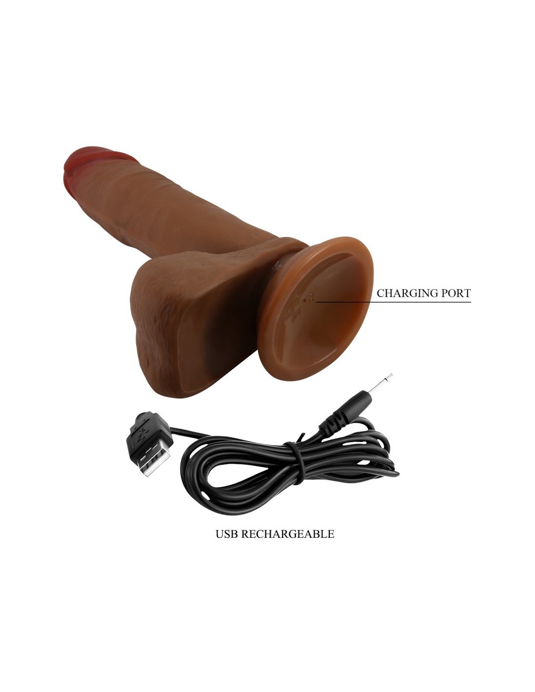 Caractéristiques :Longueur totale 23.5 cmLongueur insérable 17 cmLargeur 3.5 à 4.3 cm5 modes de vibrations5 rotations5 modes de pousséeRechargeable — batterie lithiumConseils d'utilisation :Le nettoyer avant et aprèsUtiliser uniquement un lubrifiant à base d'eauLe conserver dans un endroit propre et sec, à l'abri de la lumière et de la chaleur, sans contact avec d'autres objets