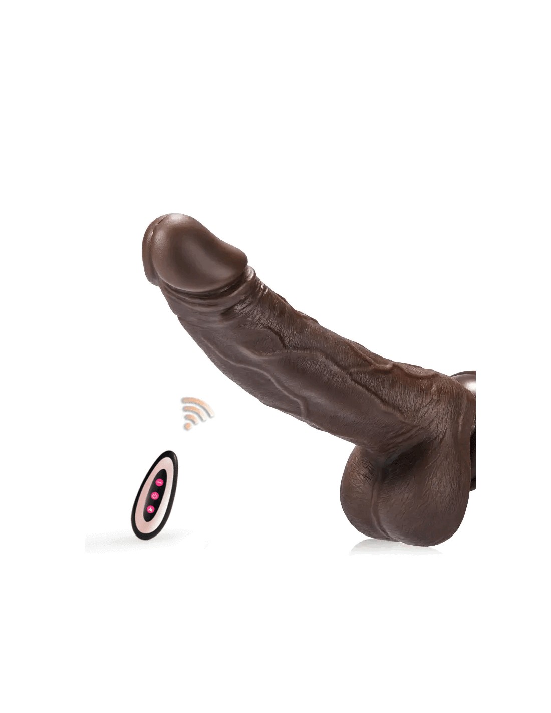 Gode avec gland décalotté et surface texturée.Longueur insérable de 17 cm et largeur de 3.5 à 4 cm.10 modes de vibrations et 6 modes de poussée.En silicone.