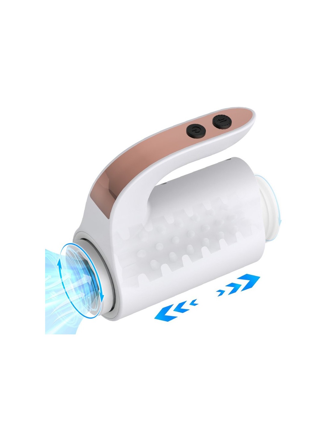 Surface avec des picots souples à l'intérieur.Avec 10 modes de va-et-vient et rotations combinés.Longueur interne de 14 cm. Largeur de 4 cm.Recharge USB.