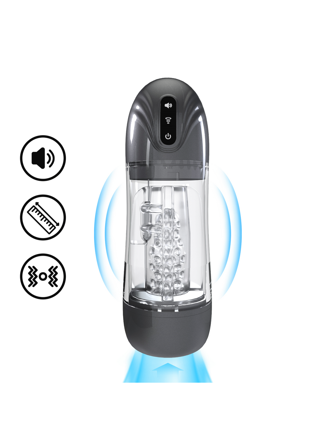 Caractéristiques :Longueur totale 25 cmLongueur insérable 14 cmDiamètre intérieur 4 cmPoids 610 grammesAutonomie 60 minTemps de charge 120 minNiveau sonore < 60dB7 modes de vibrations3 modes de succionBatterie Lithium - recharge en USBÉtanche à l'eau (IPX7 - pas d'immersion).Précautions d'utilisation :Utiliser avec du lubrifiantS'assurer que la batterie est chargée entièrement avant de l'utiliserNettoyer l'intérieur après chaque utilisationConserver dans un endroit propre, sec et à l'abri de la chaleur.