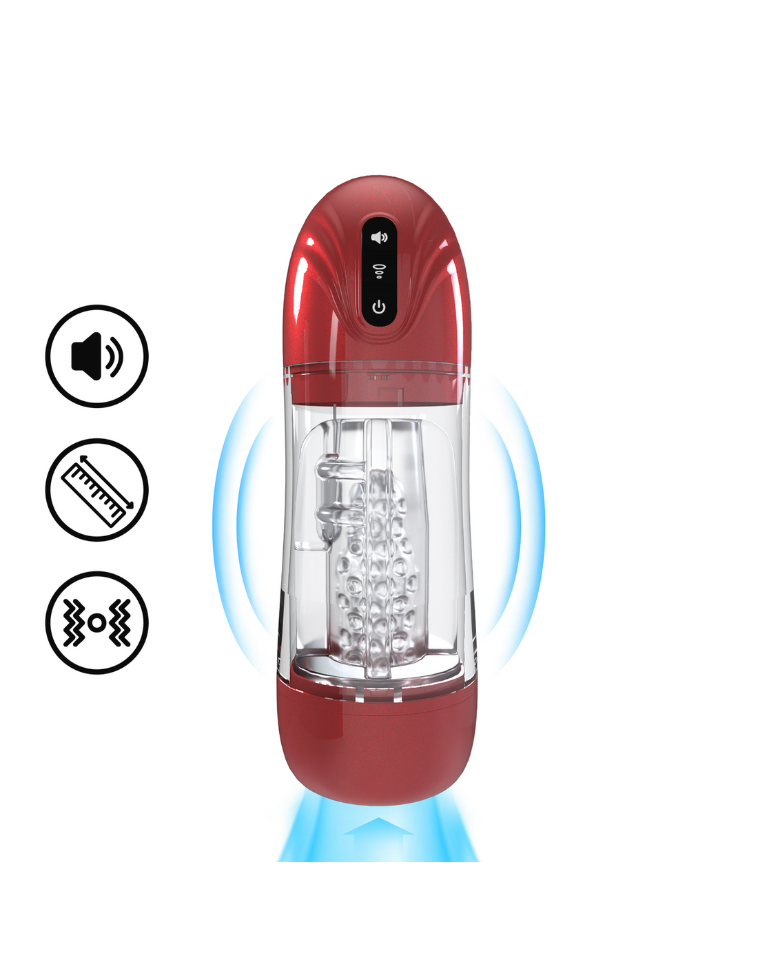 Caractéristiques :Longueur totale 25 cmLongueur insérable 14 cmDiamètre intérieur 4 cmPoids 610 grammesAutonomie 60 minTemps de charge 120 minNiveau sonore < 60dB7 modes de vibrations3 modes de succionBatterie Lithium - recharge en USBÉtanche à l'eau (IPX7 - pas d'immersion).Précautions d'utilisation :L'utiliser de préférence avec un lubrifiant à base d'eauS'assurer que la batterie est chargée entièrement avant de l'utiliserNettoyer l'intérieur après chaque utilisationConserver dans un endroit propre, sec et à l'abri de la chaleur.