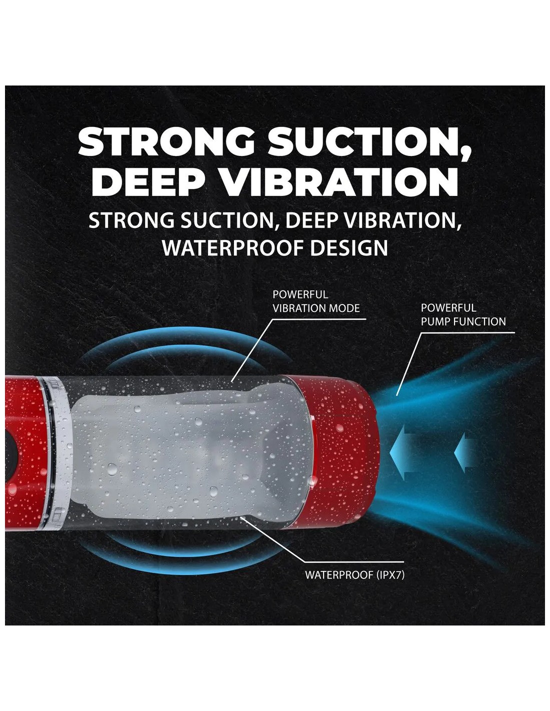 Masturbateur TechnoThrust Vibrations et Succion Rouge