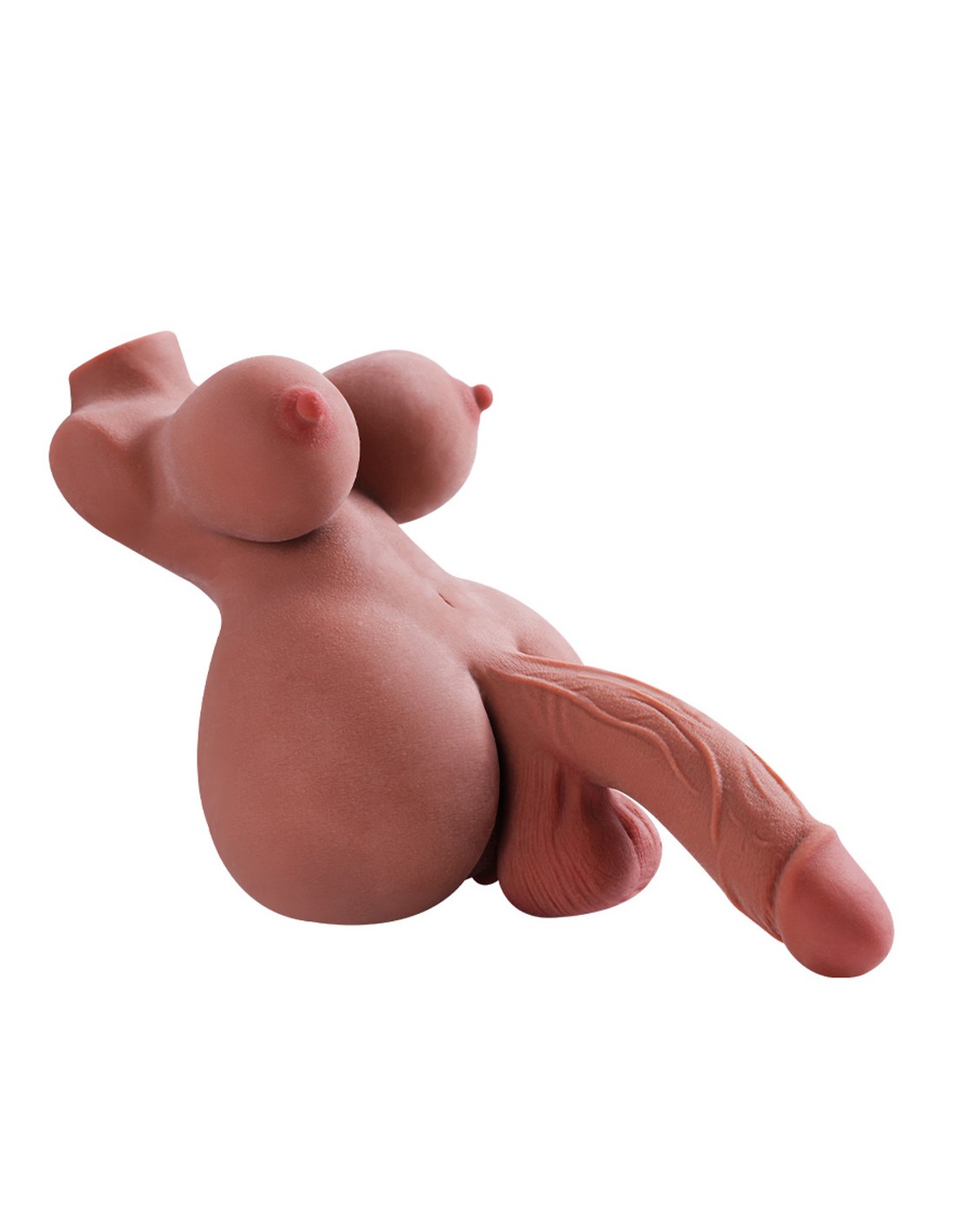 Masturbateur avec double entrée, vulve et anus.Gode d'une longueur insérable de 13.5 cm et largeur de 3.5 cm.Entrée pussy et anus : longueur de 13.5 cmEn TPE.