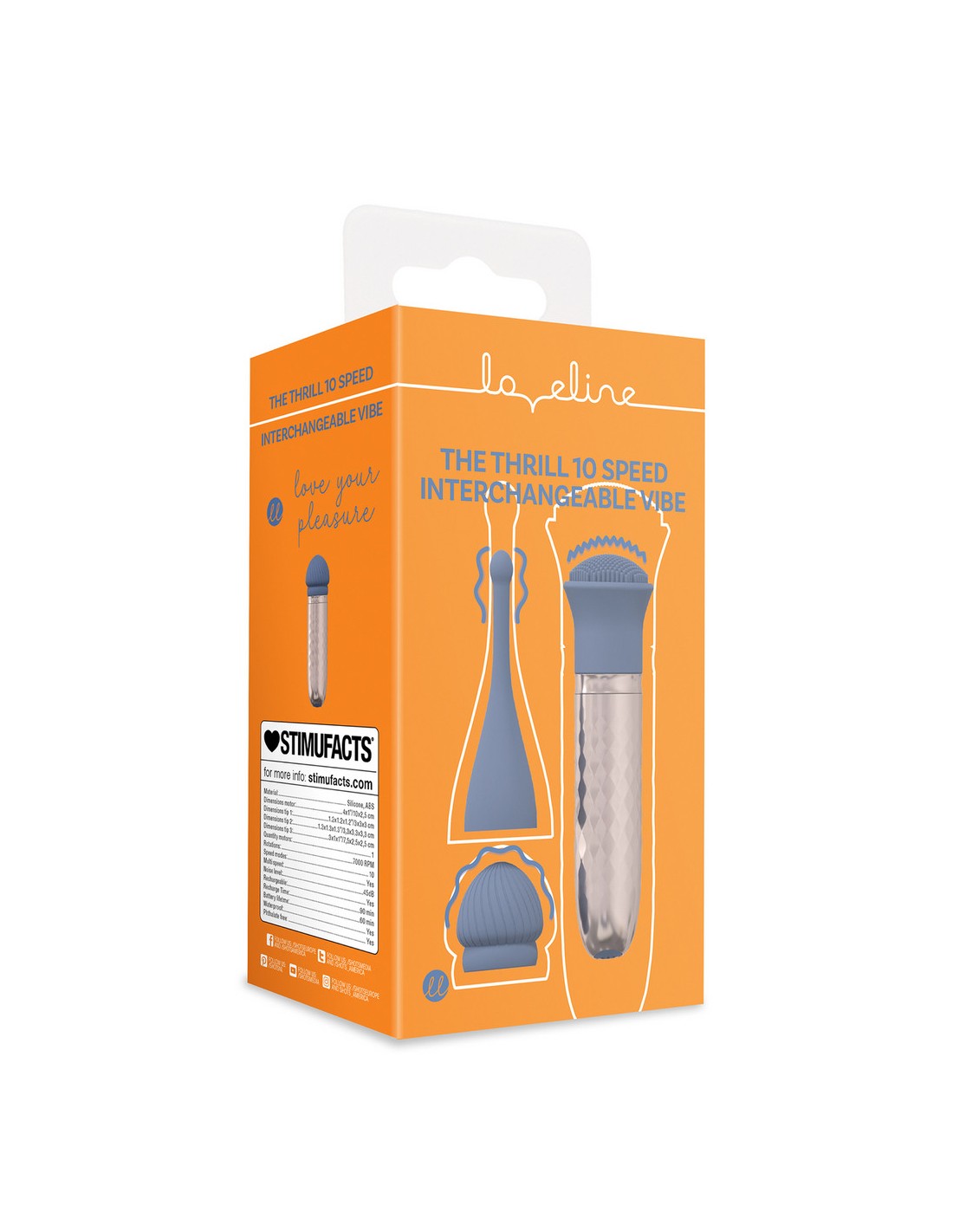 LovelineLe Vibromasseur Interchangeable Thrill est discret avec moins de 45 dB, tout en délivrant un puissant coup orgasmique quand cela est le plus nécessaire. Son moteur de nouvelle génération F1, avec 10 modes différents au choix, monte jusqu'à 7000 tr/min à la pointe. Fabriqué en silicone premium et sûr pour le corps, il offre plus de 60 minutes de plaisir débridé sur une seule charge. Tous les produits Loveline sont accompagnés d'une garantie d'un an.