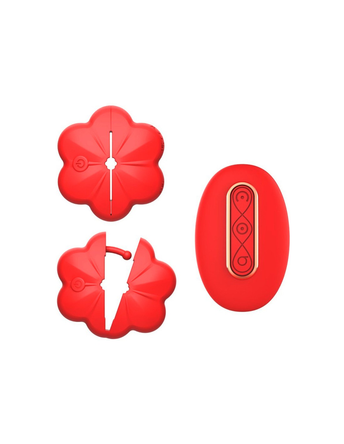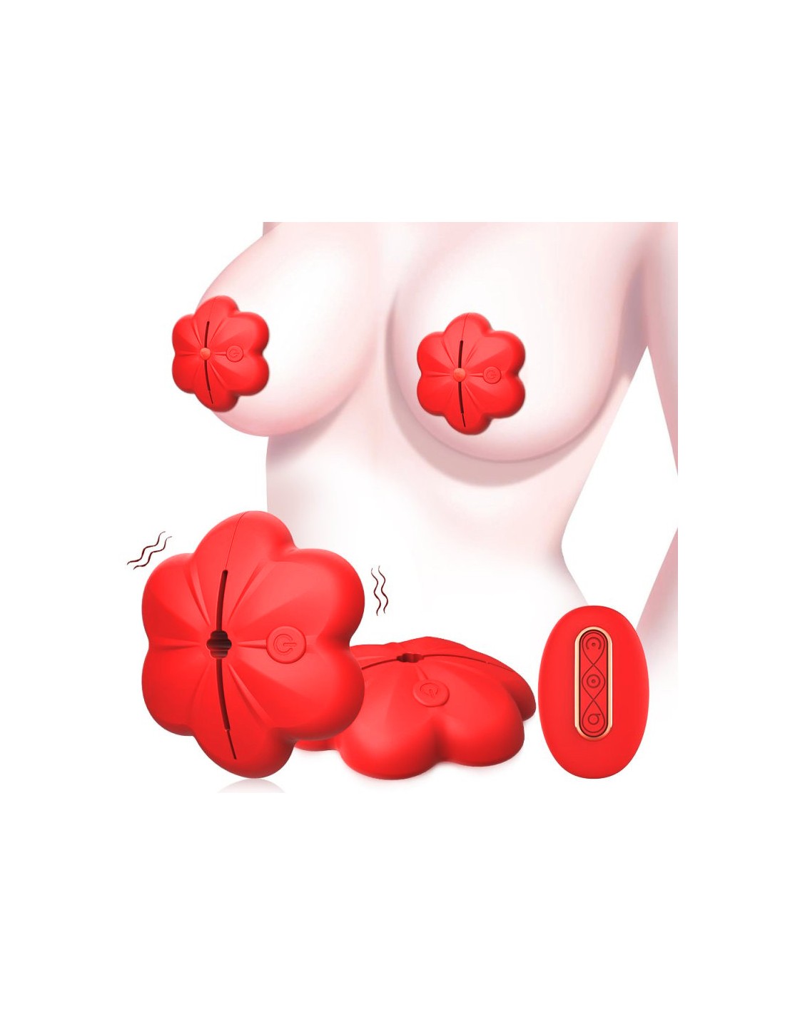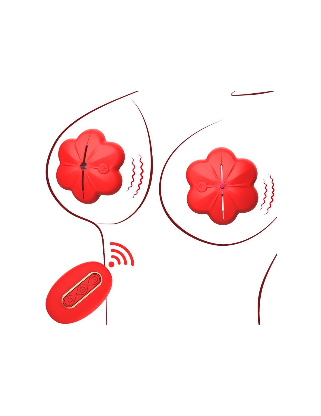 Pinces à seins avec 10 modes de vibrations, avec télécommande sans fil.Diamètre de 7 cm pour une épaisseur de 1.8 cm.En silicone rouge, étanches et rechargeables.
