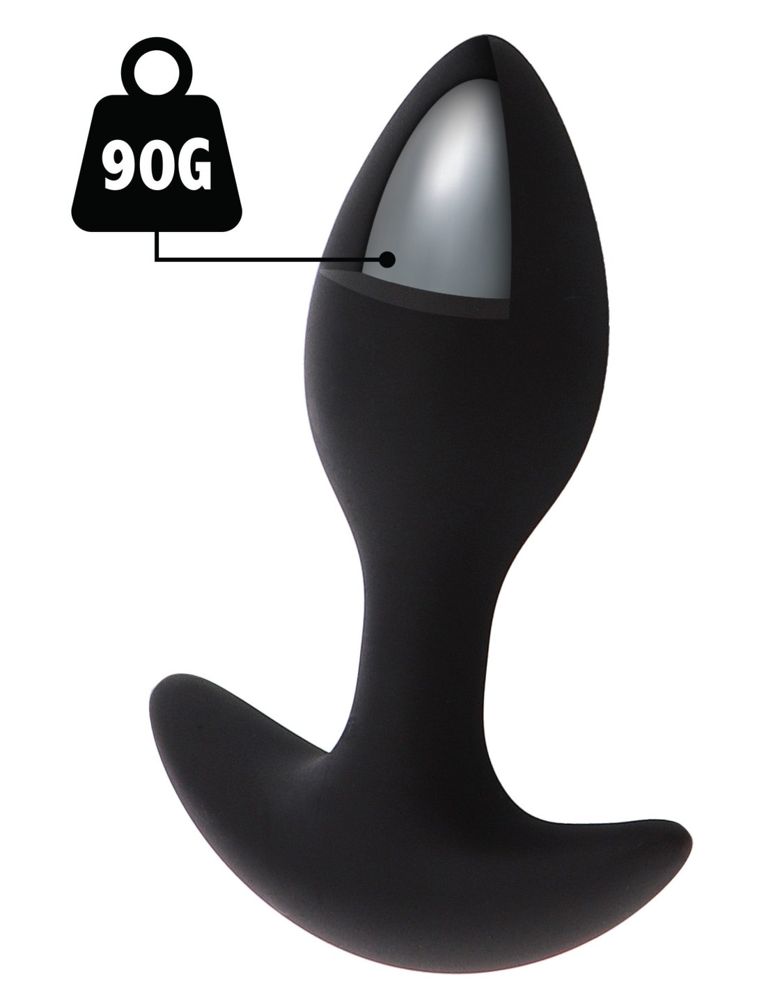 Avec une forme conique et un poids de 90 grammes.Longueur insérable de 7 cm et largeur maximale de 2.5 cm.La surface est lisse et la base est incurvée.Structure rigide avec revêtement Silicone confortable.