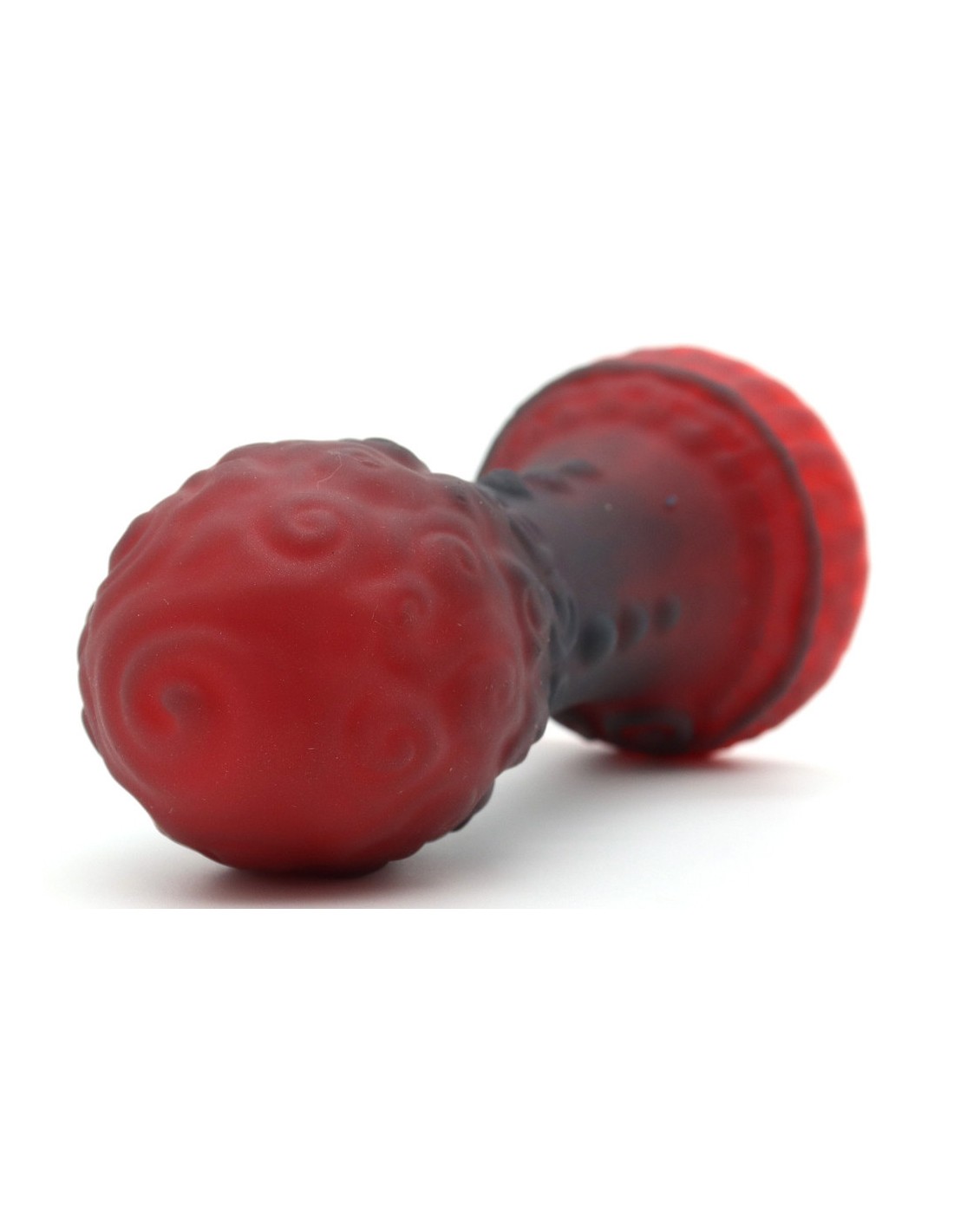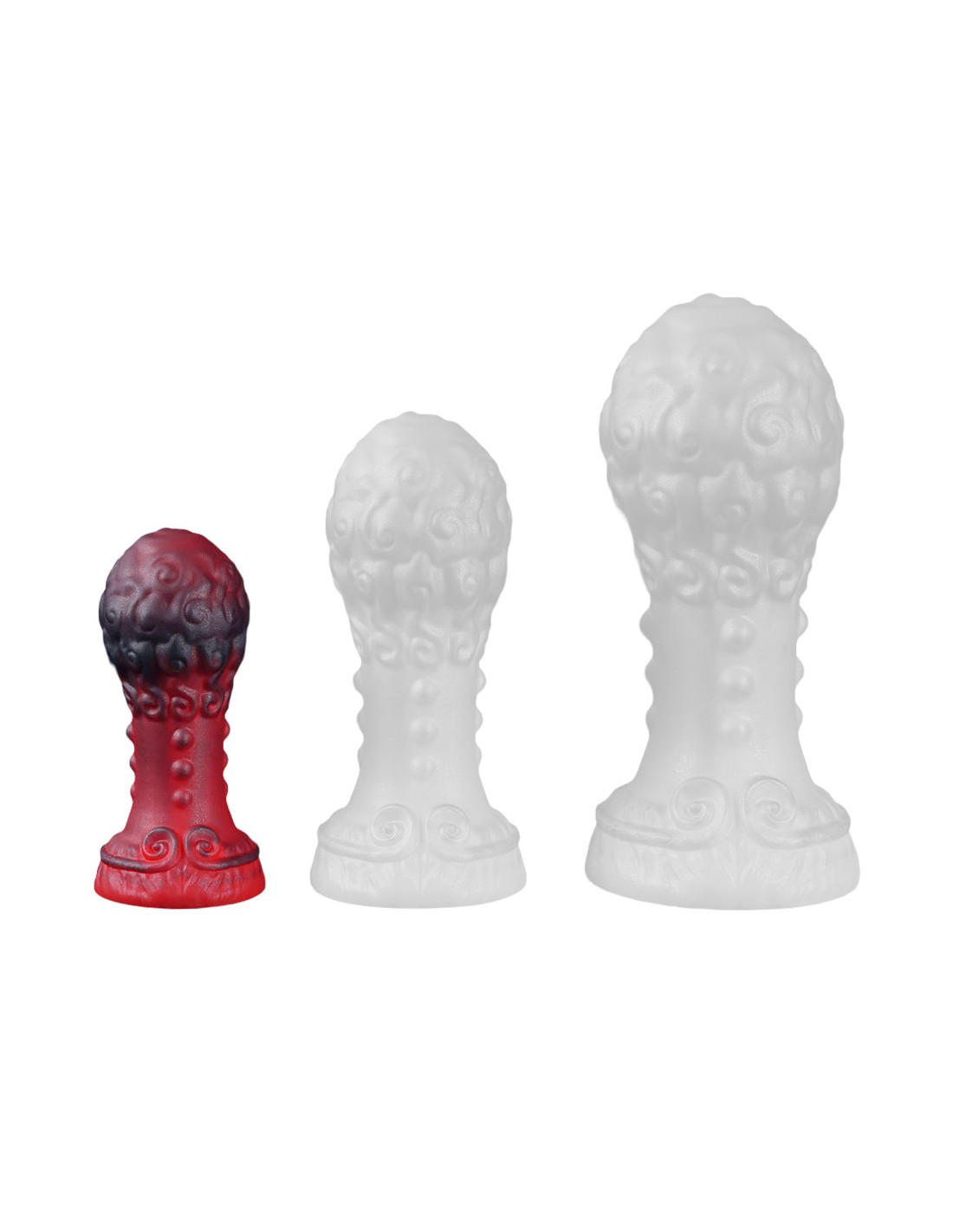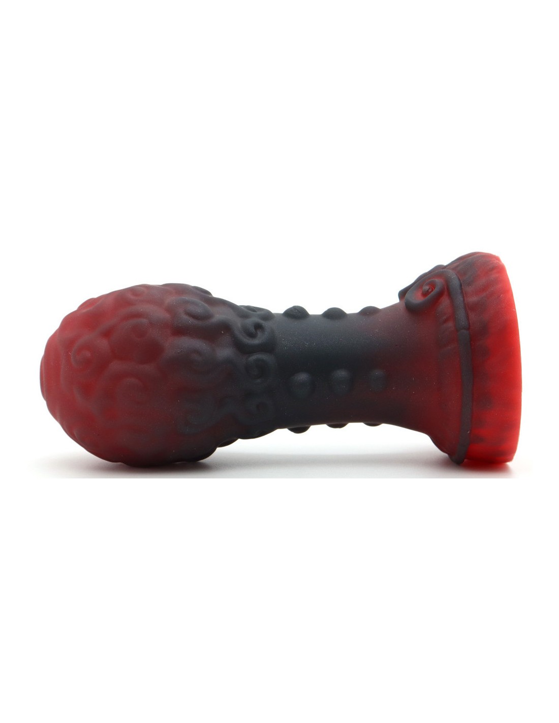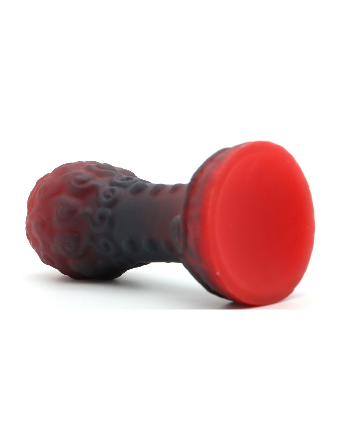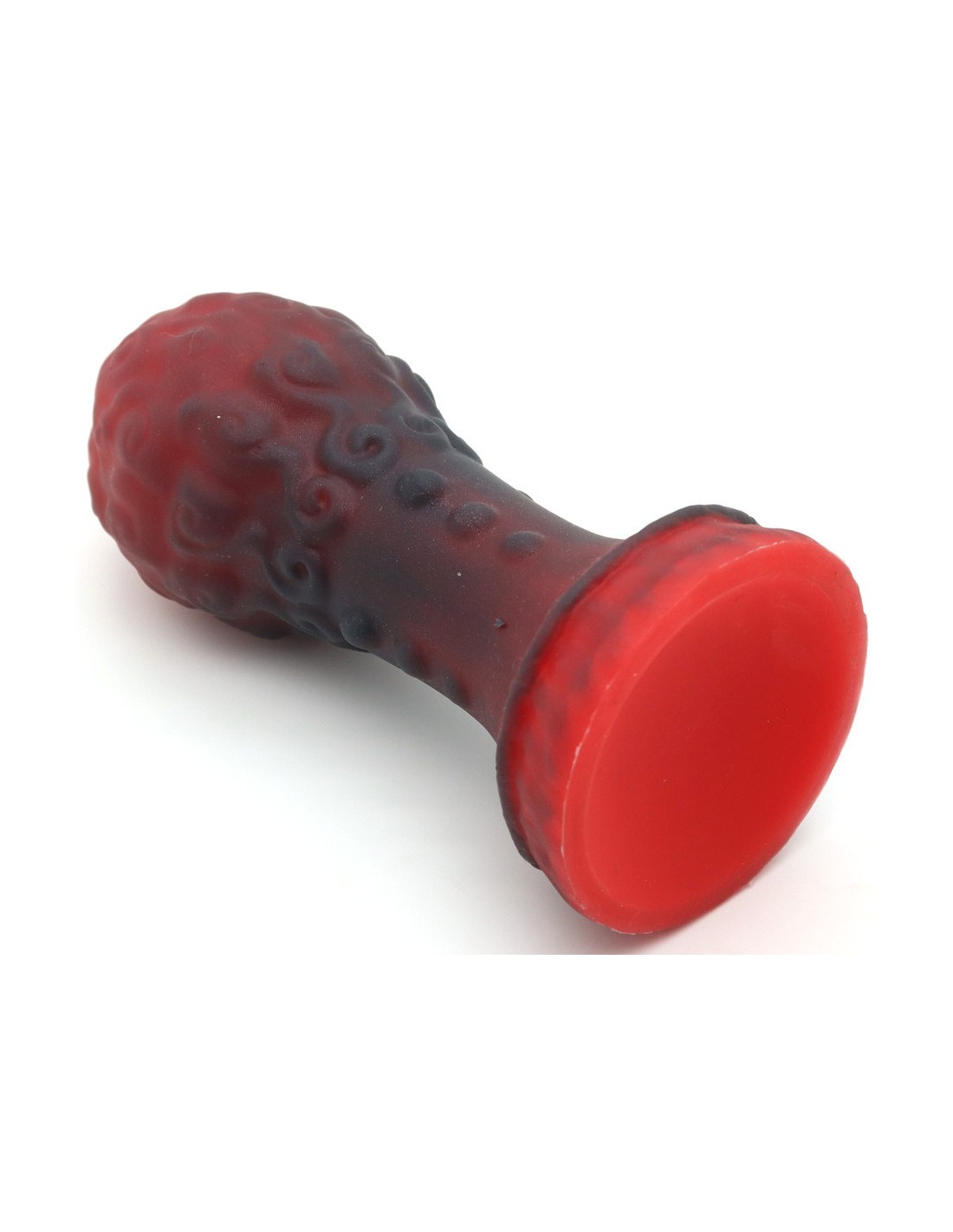 MONSTEREDPlug de forme ronde, à la surface texturée. Longueur insérable de 11 cm et largeur de 3.5 à 5.4 cm. En silicone, avec base ronde.